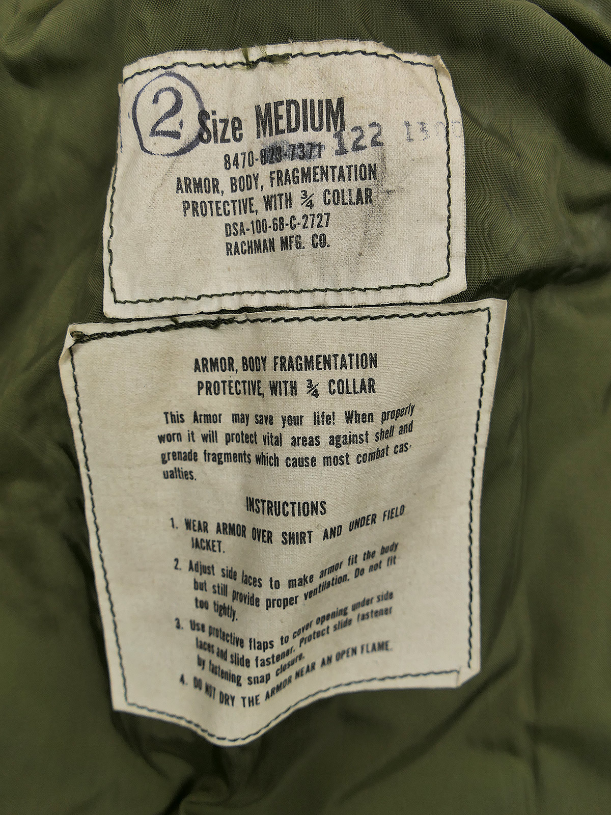 US Vietnam Flak Vest Body Armor Splitterschutzweste Fragmentation size Medium 1968 TOP