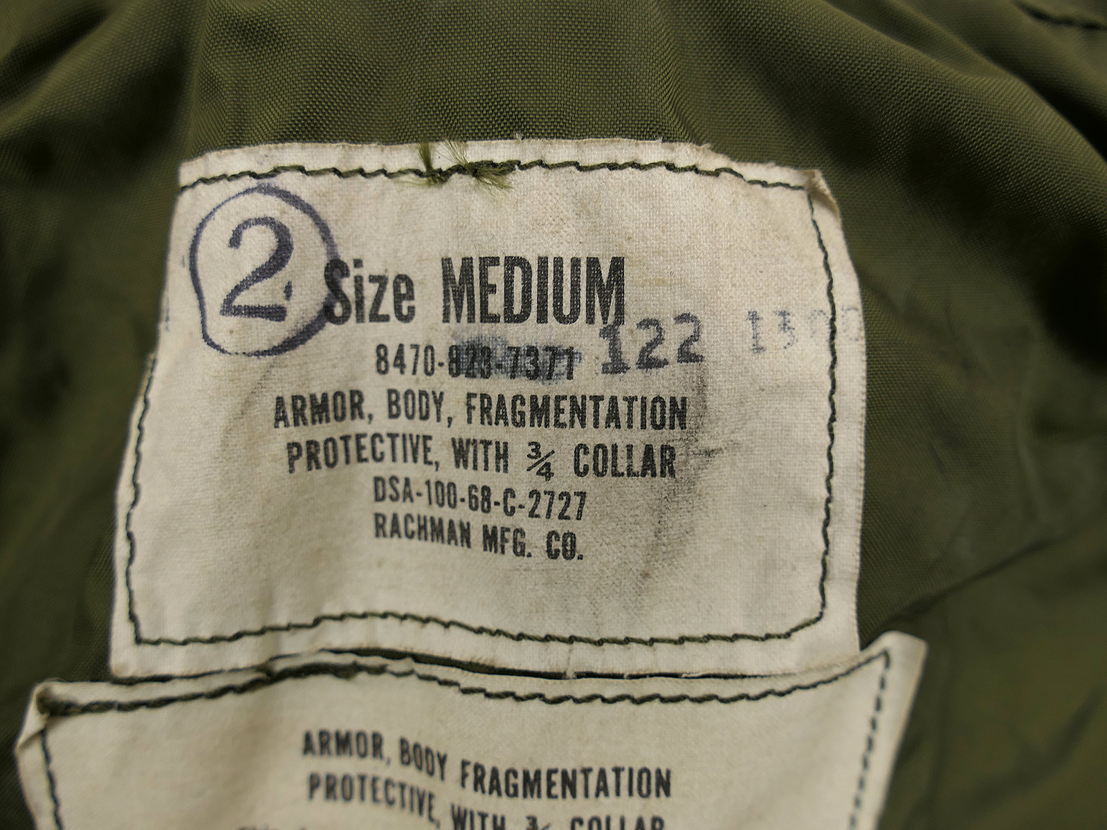 Original Armor, Body, Fragmentation, Protective Vest - Splitterschutzweste, Vietnam Ära, 1968 datiert!