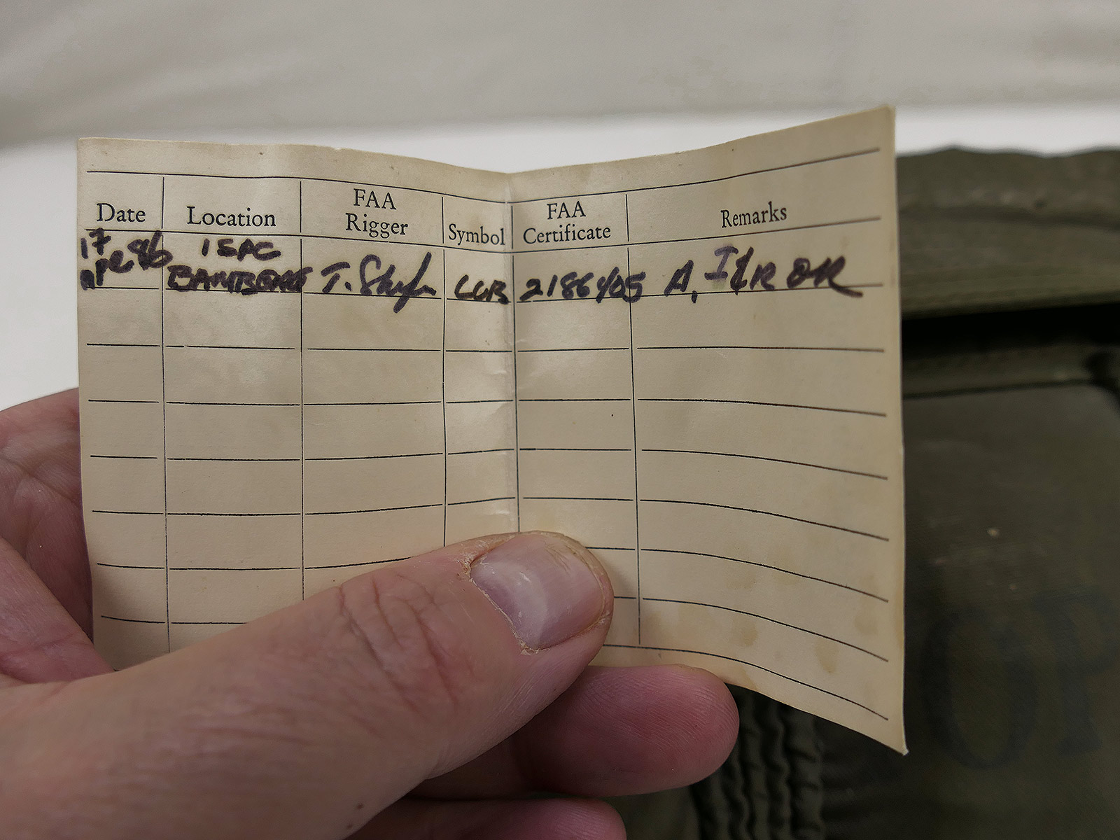 US Vietnam Special Forces T7A Reserve Fallschirm AUG. 1959 für T10 Parachute aus SAMMLUNG