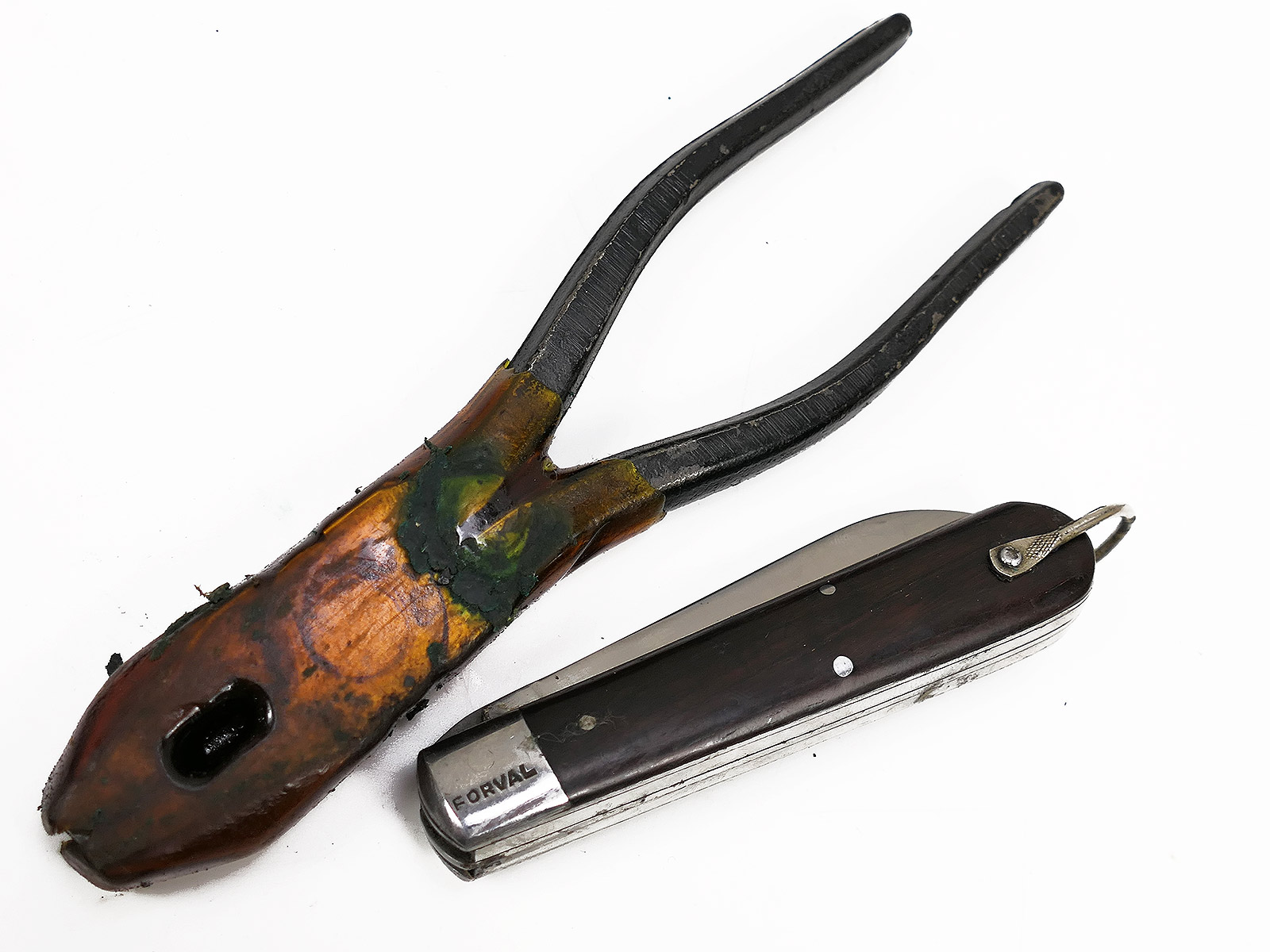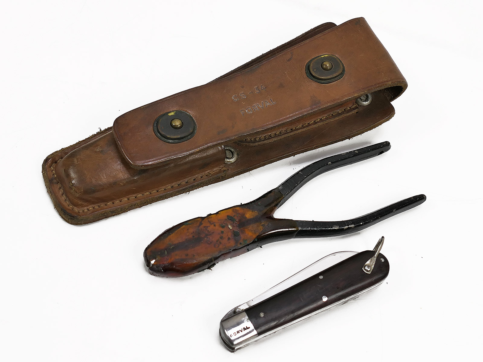 US WW2 Signal Corps Engineer Tool Kit CS-34 FORVAL pouch with pocket knife & pliers Messer u. Zange COLLECTION