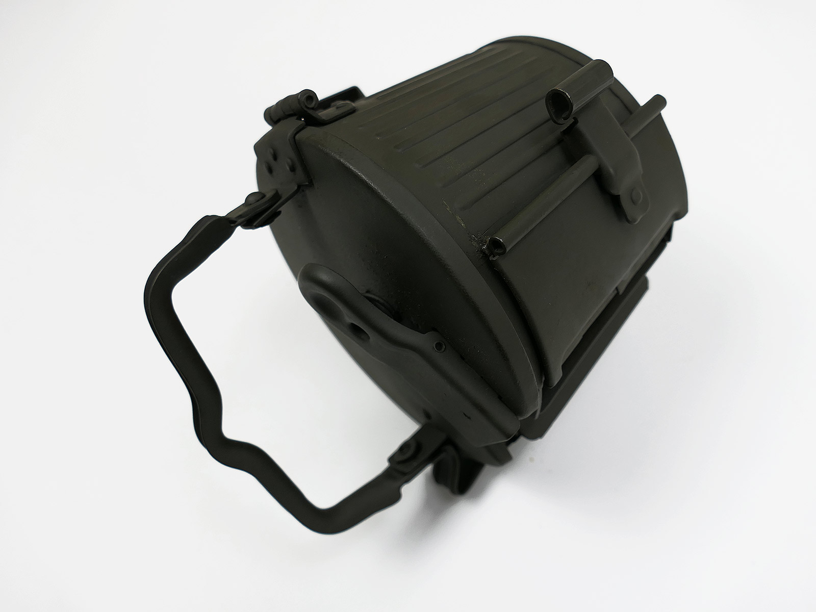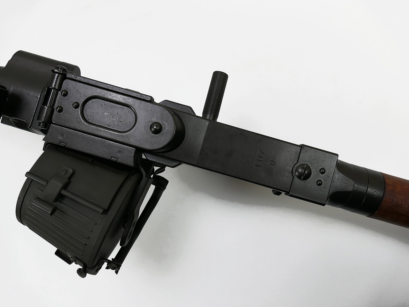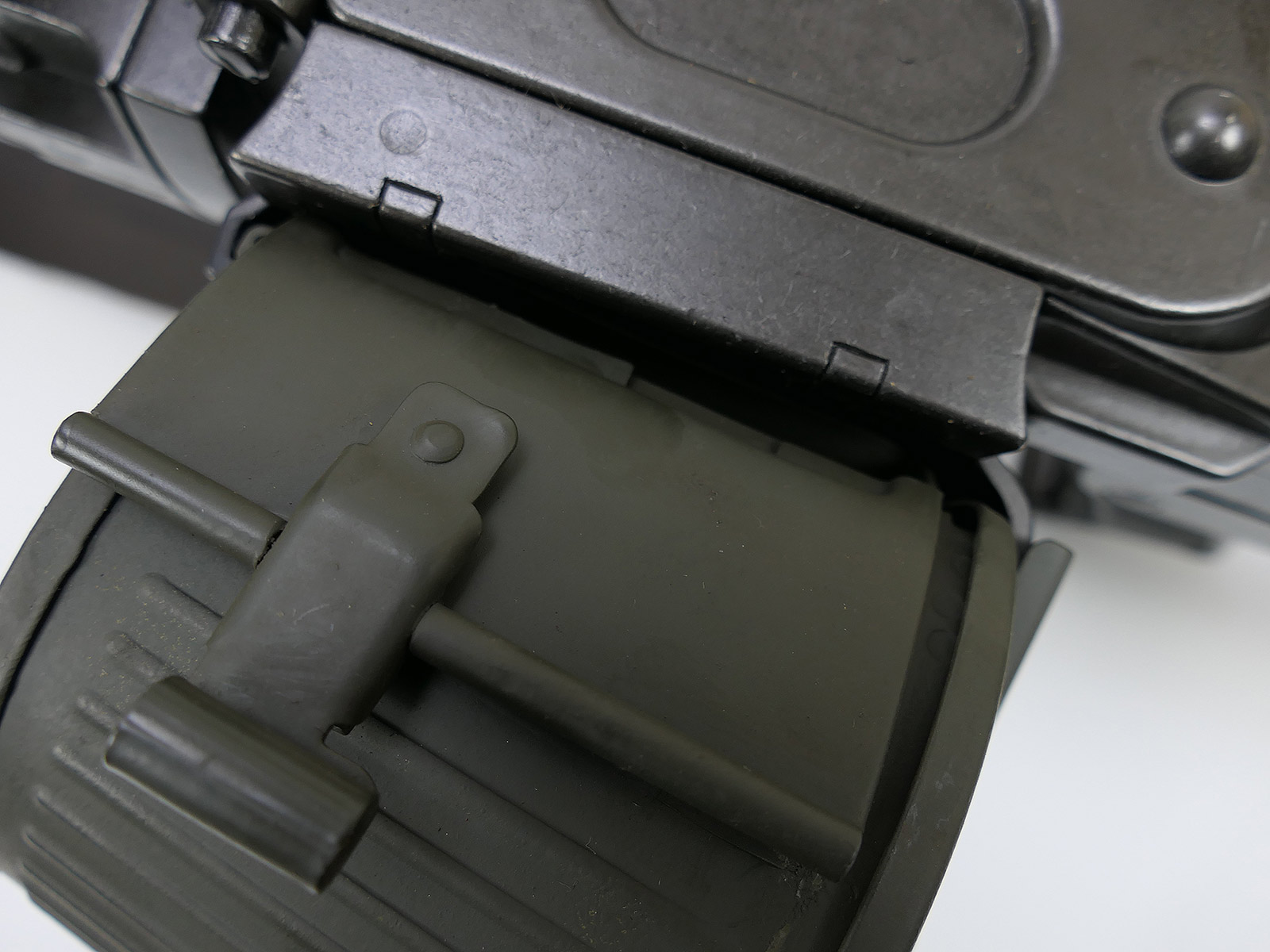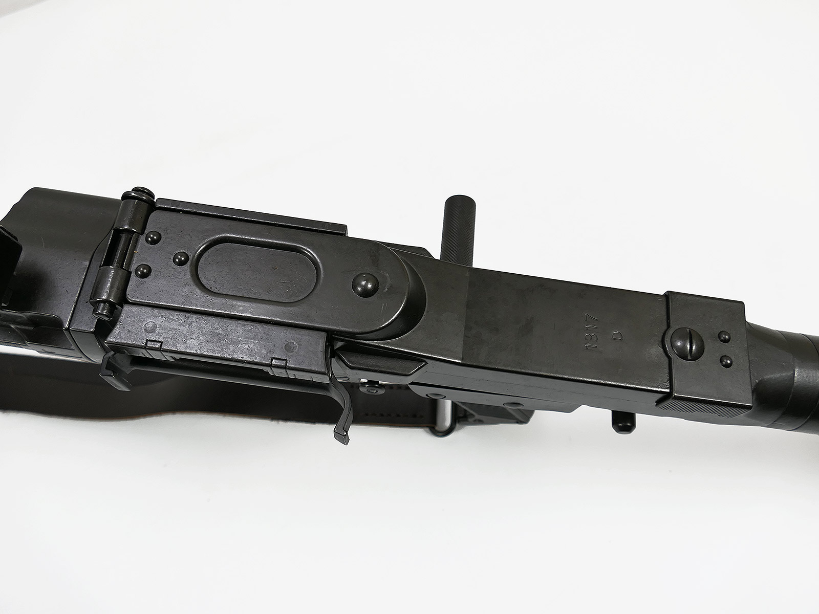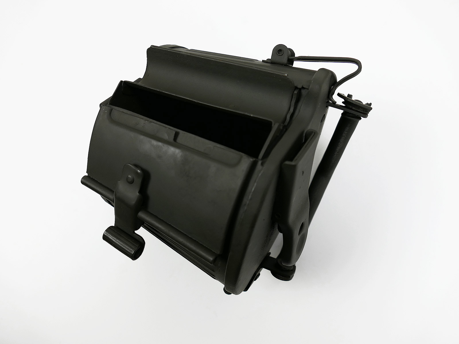 Das Zuführerunterteil wurde so bearbeitet, dass es -wie das Original- sowohl eine Gurttrommel als auch einen Munitionsgurt aufnehmen kann.