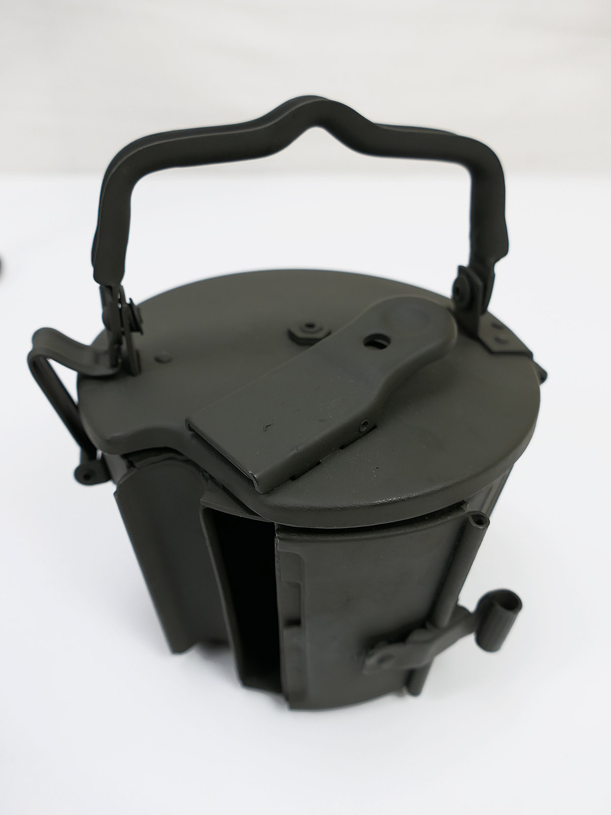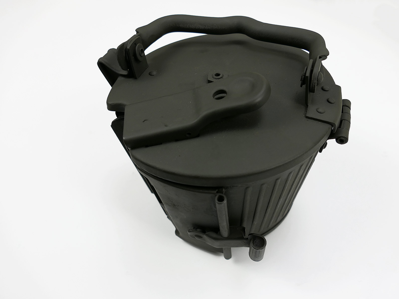 Mit Fliegervisier / Kreiskorn und Leder Trageriemen sowie Gurttrommel (Jugo)