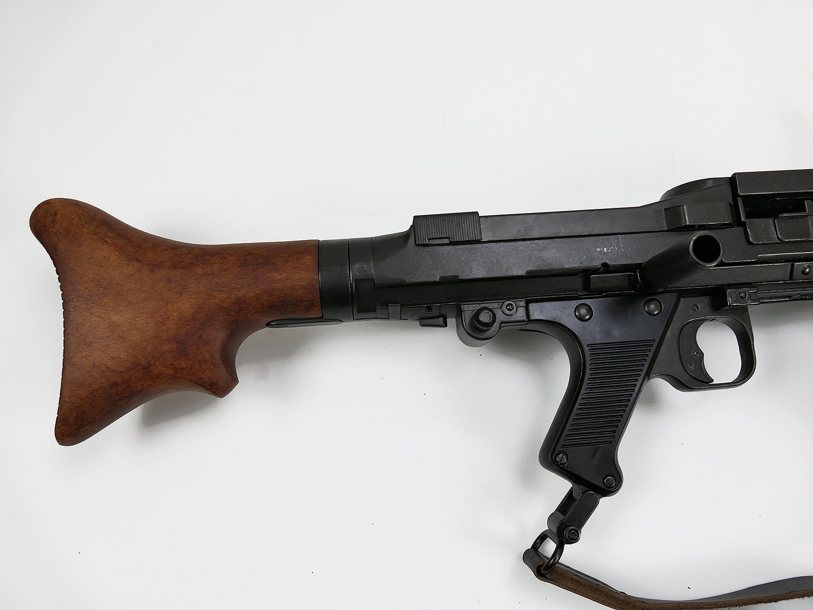Sehr schöner beweglicher Vollmetall Nachbau (Denix) des Deutschen MG34 aus dem WK2. Spannen und abschlagen möglich, Schulterstütze aus Holz.