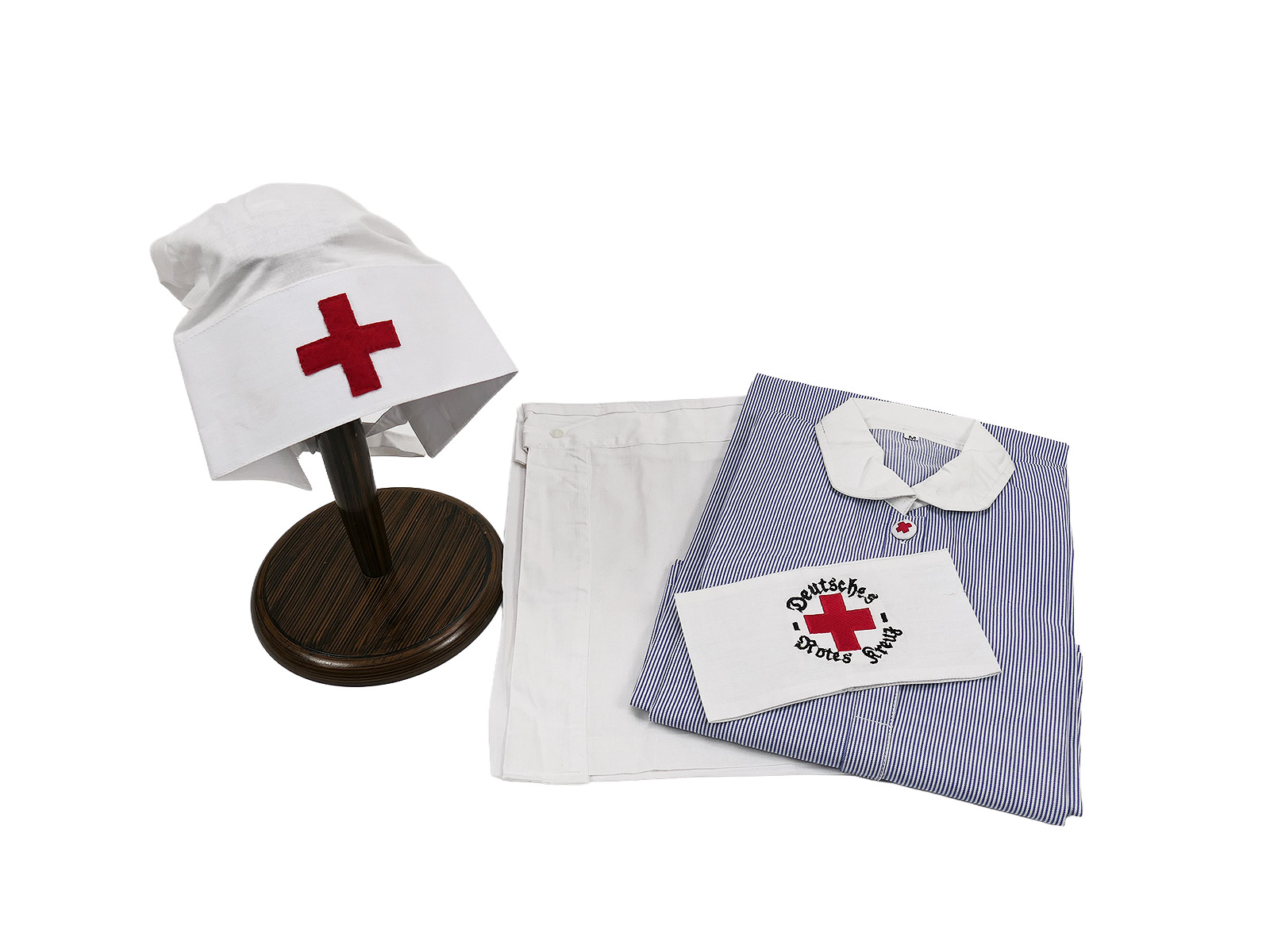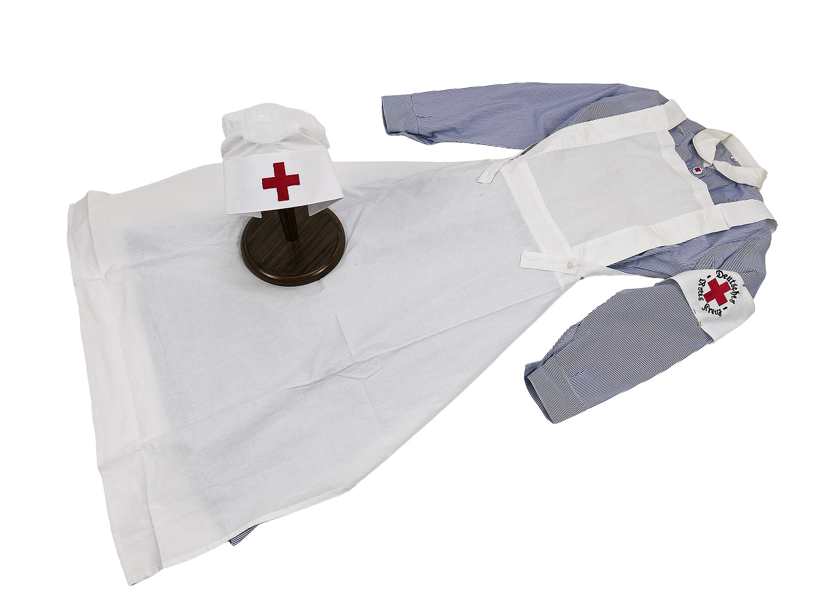 Set DRK Schwestern Uniform - Kittel, Schürze, Kopfhaube, Armbinde