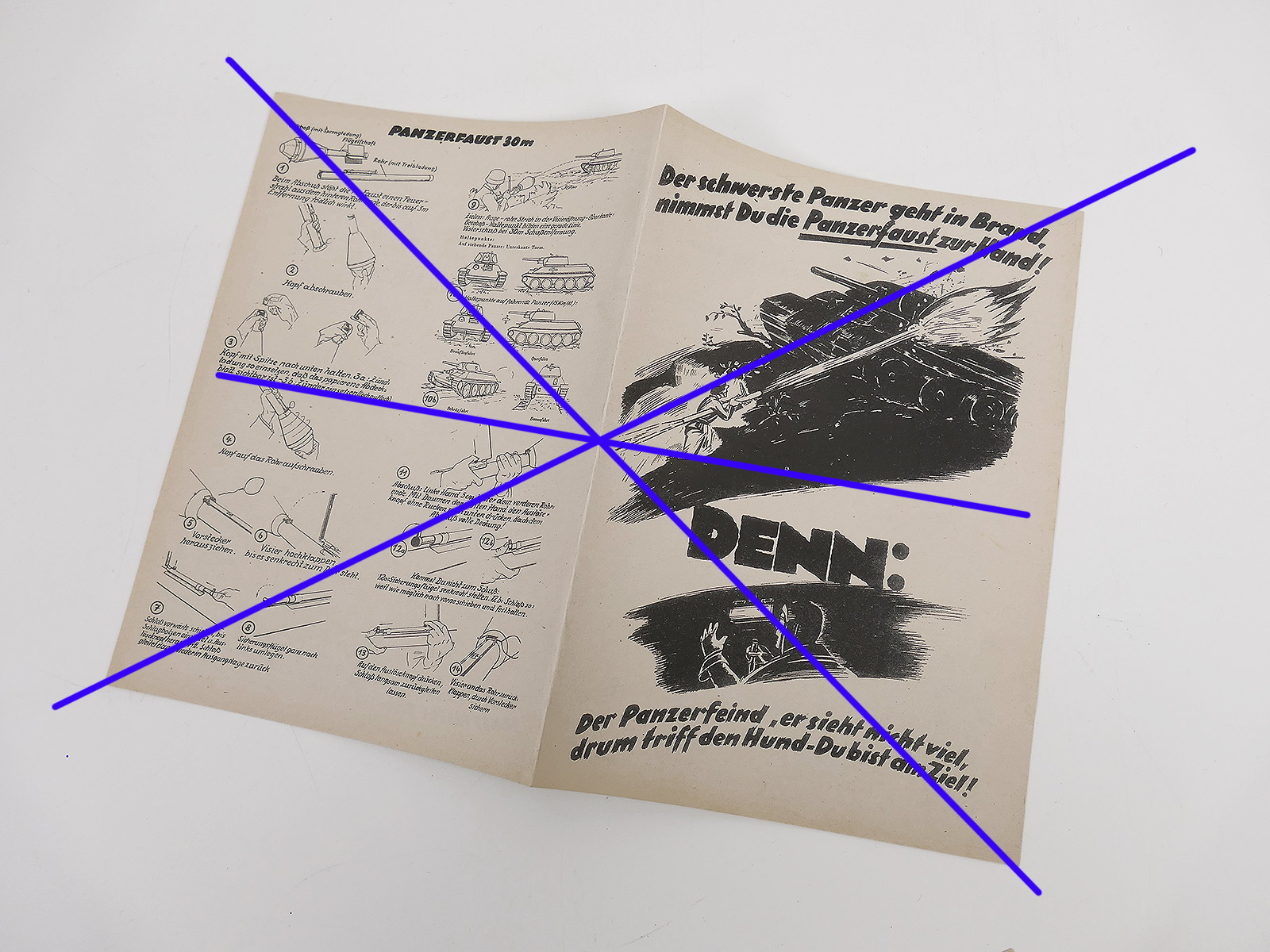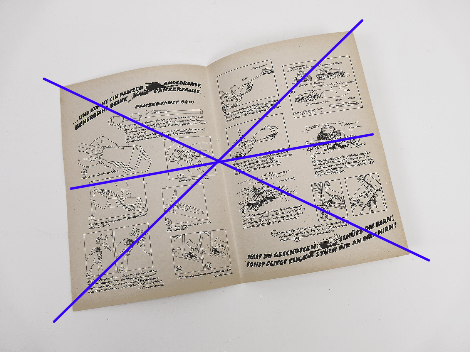 Original , zeitgenössische Faltblätter zum Gebrauch der Panzerfaust.