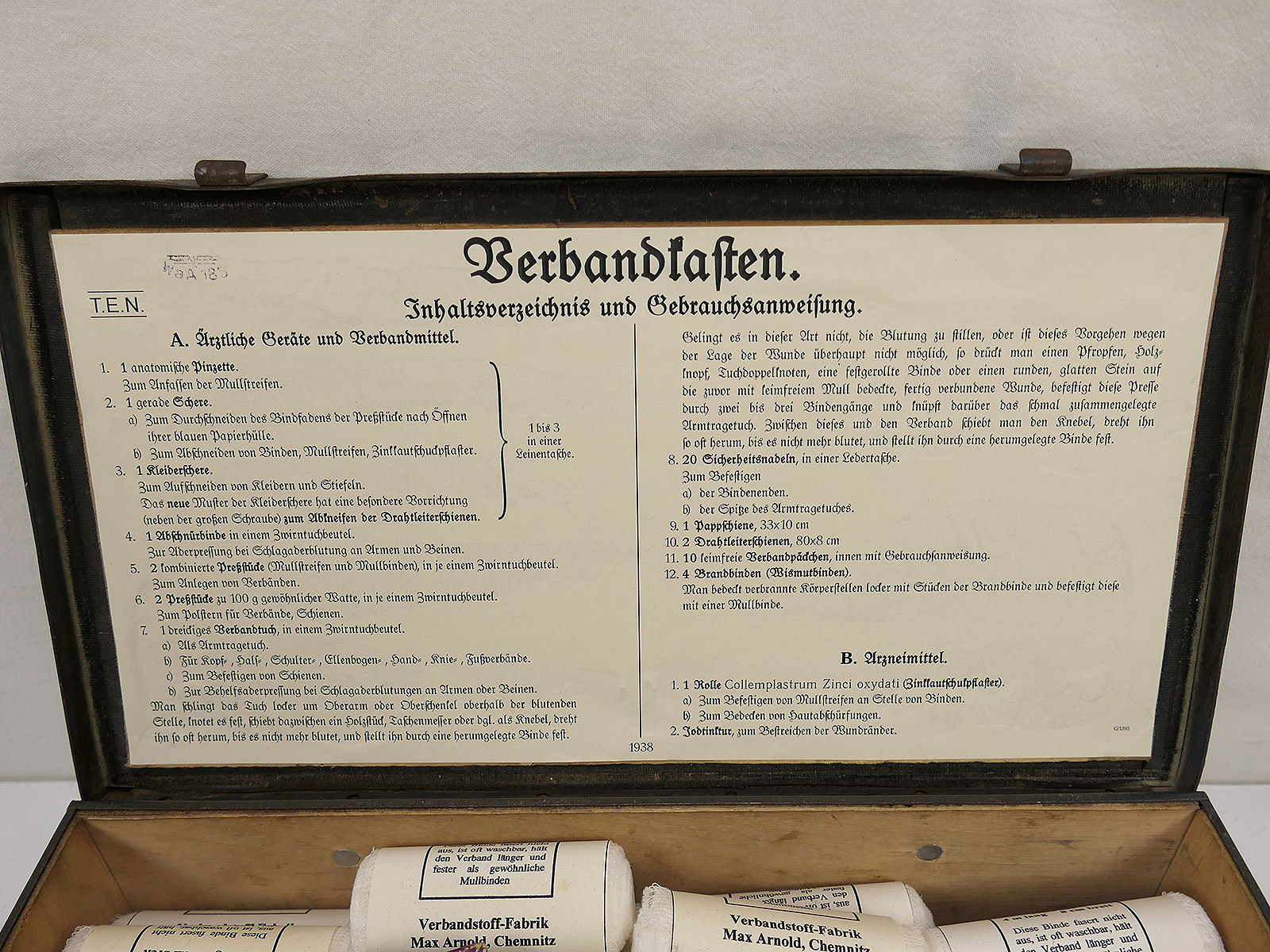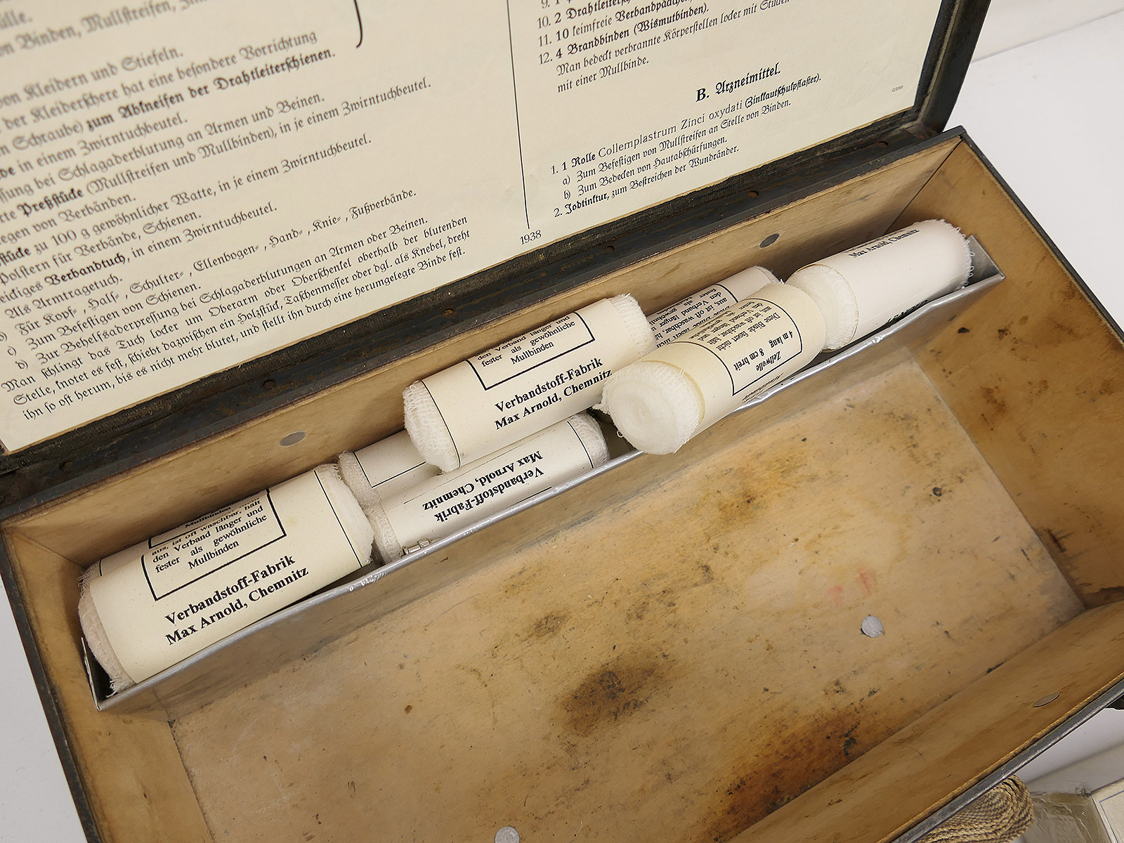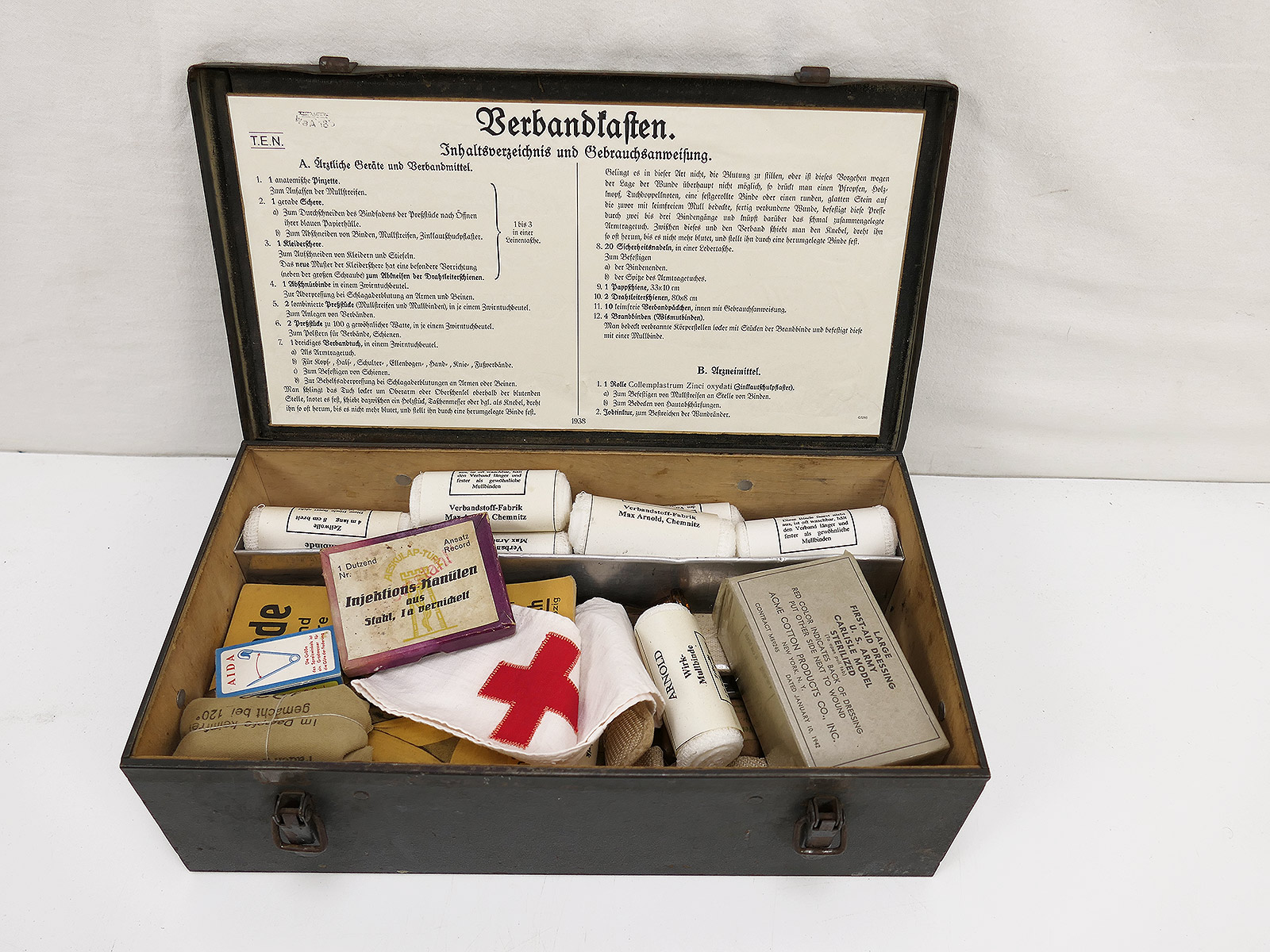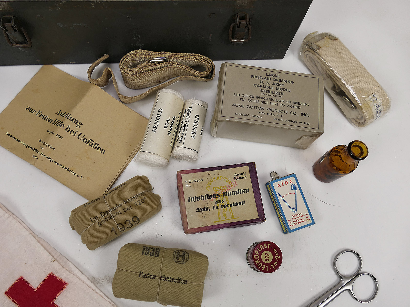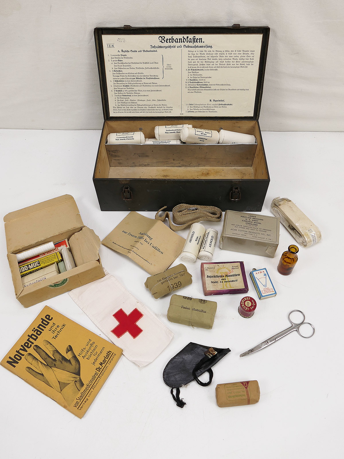 Wehrmacht Luftwaffe Rotkreuz Verbandkasten Erste Hilfe Kasten mit Inhalt KFZ VW82 VW166 Gespann Kübelwagen Kettenkrad