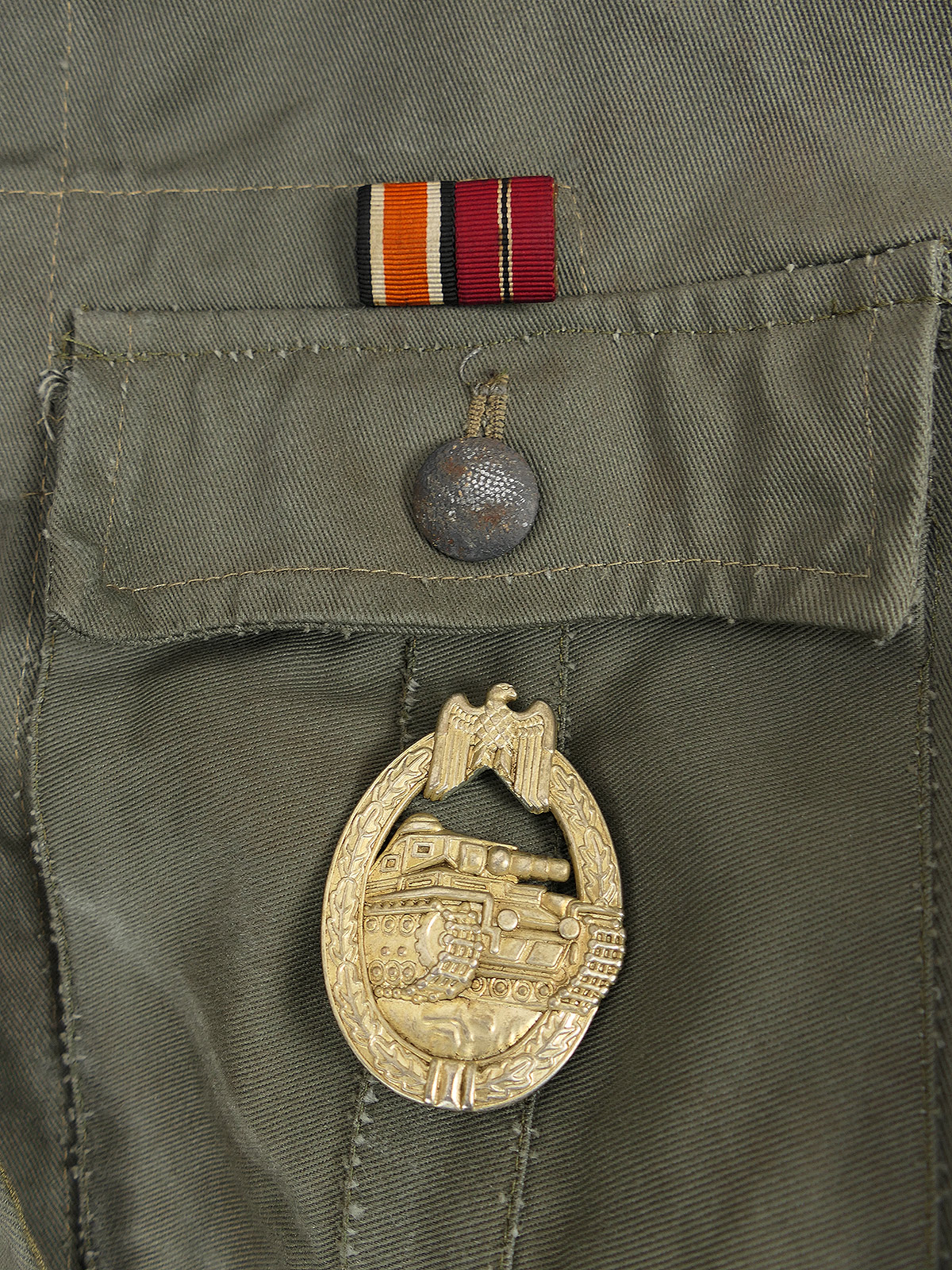 Komplett effektiert wie abgebildet, mit einem Panzervernichter, das Panzerkampfabzeichen ist entnazifiziert,