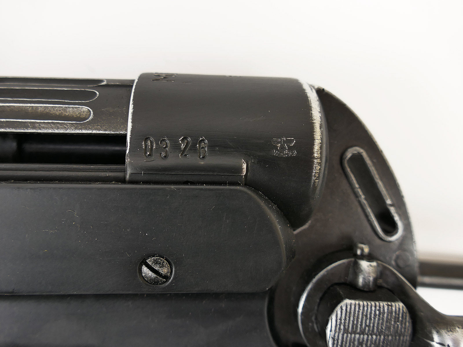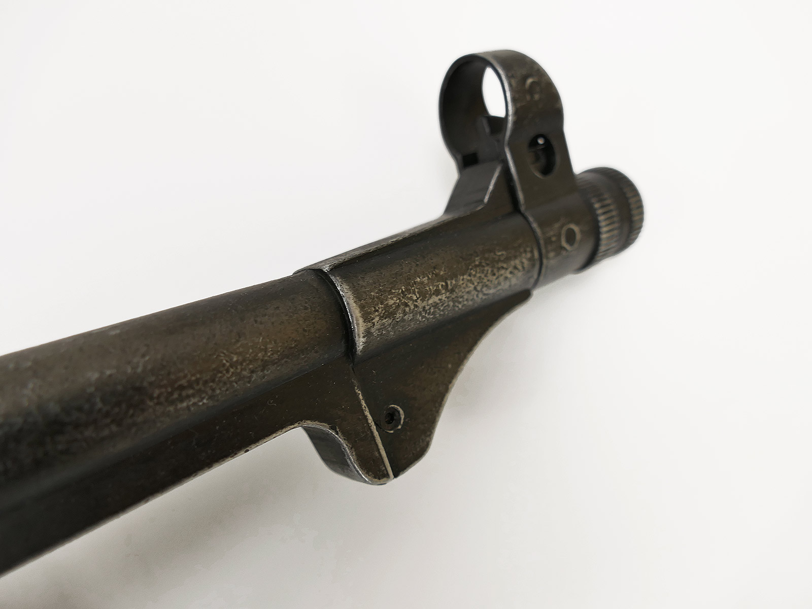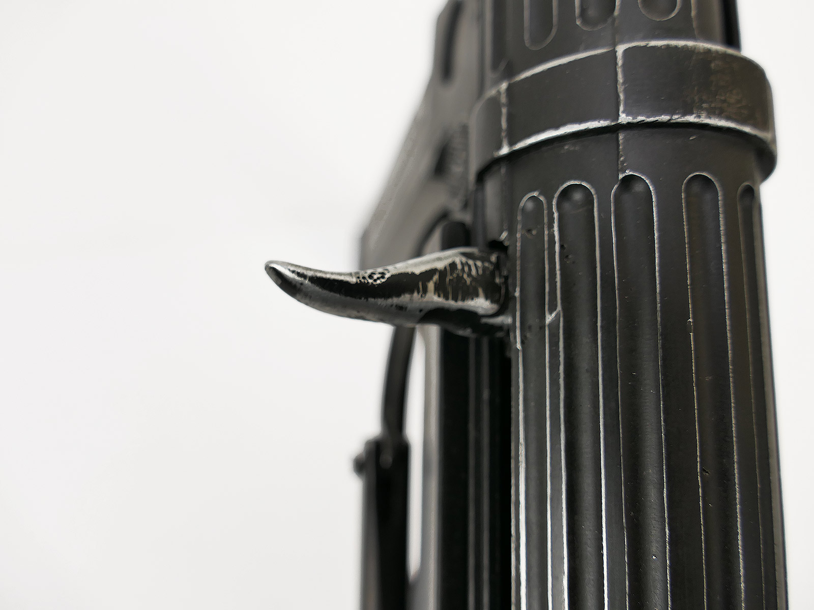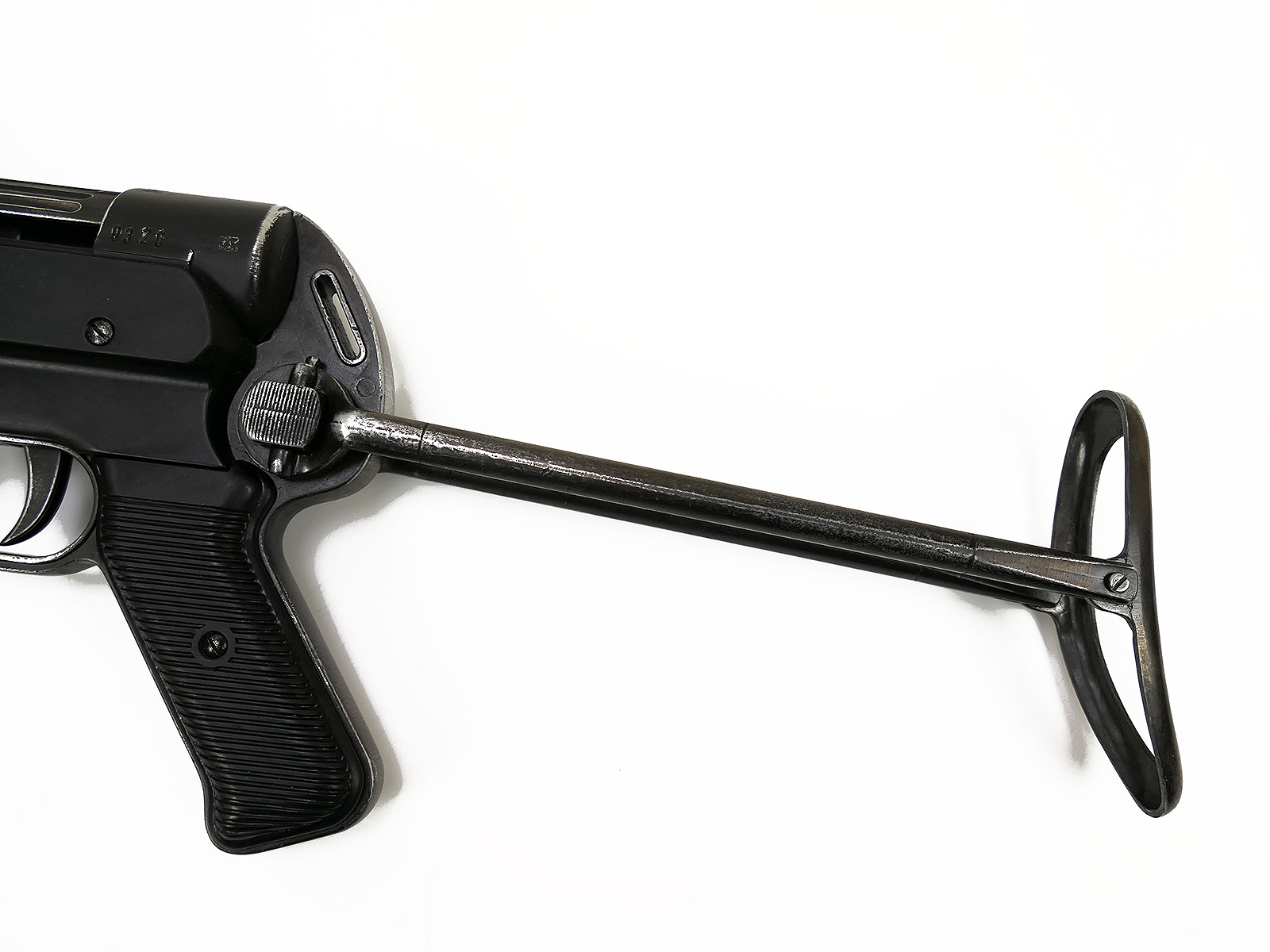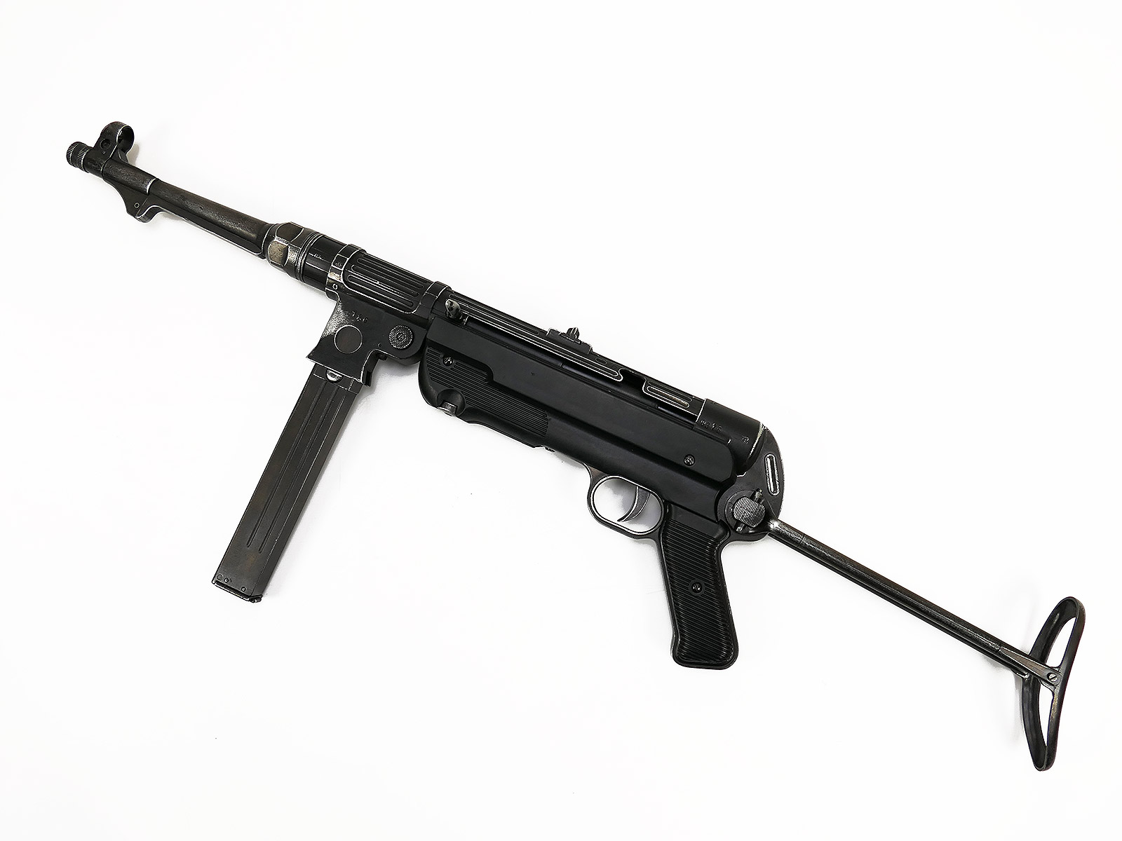Ursprünglich eine MP40 der Firma Denix, hier von Hand zu einer MP38 umgebaut.