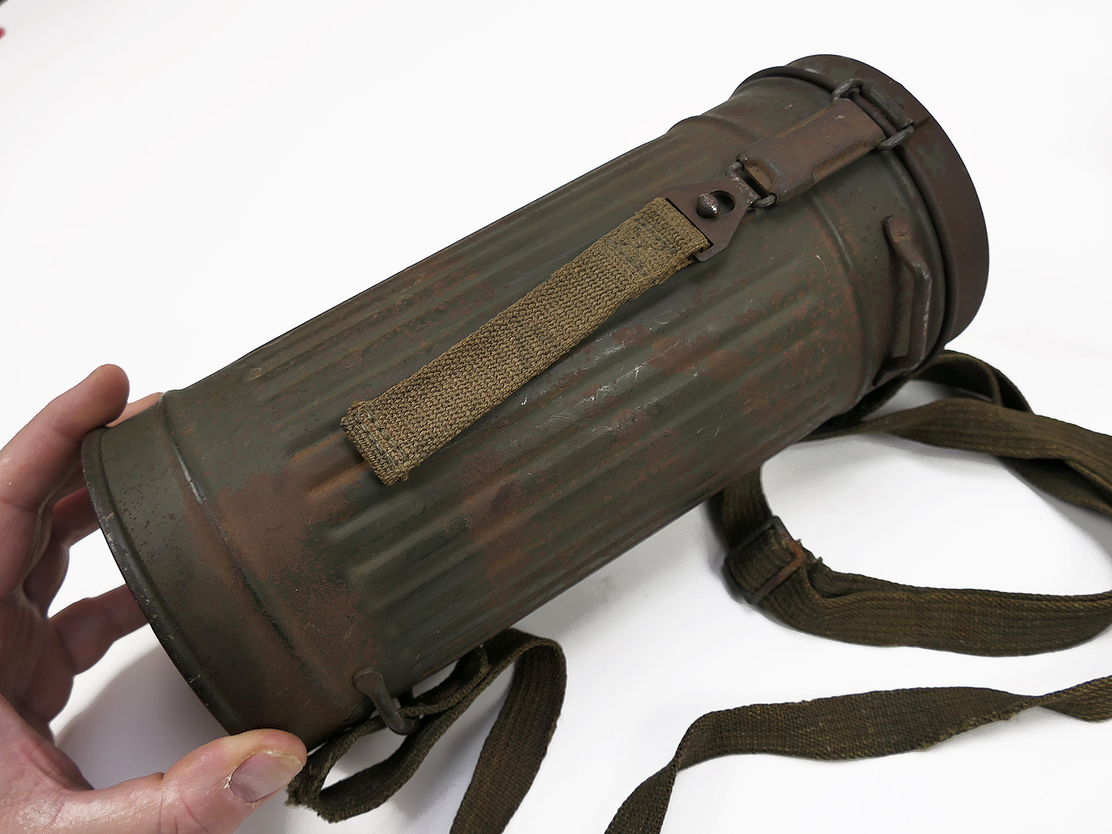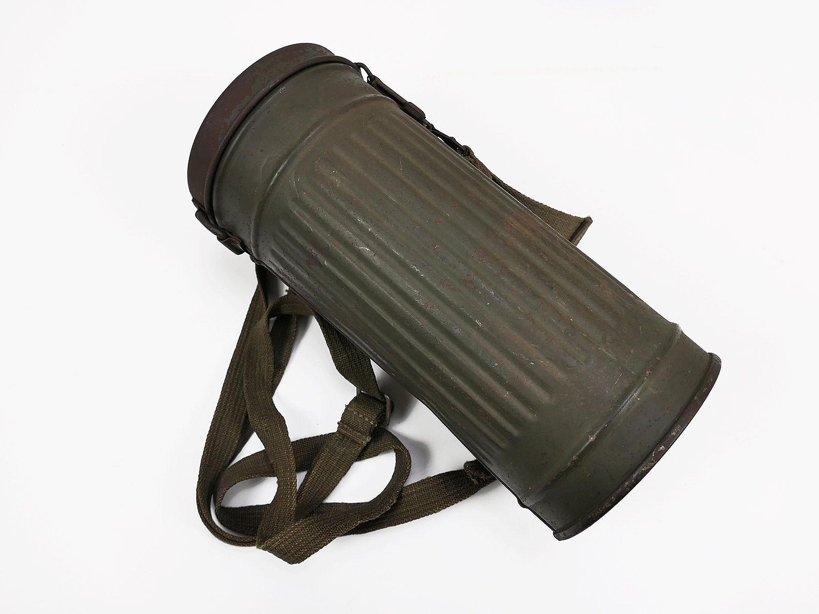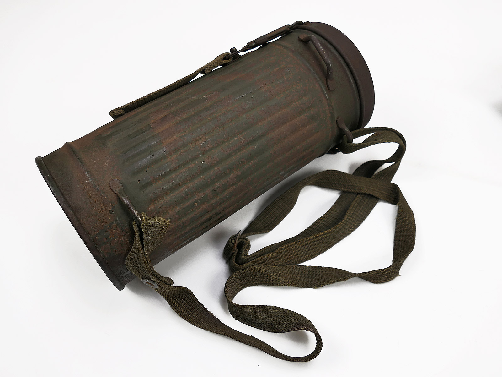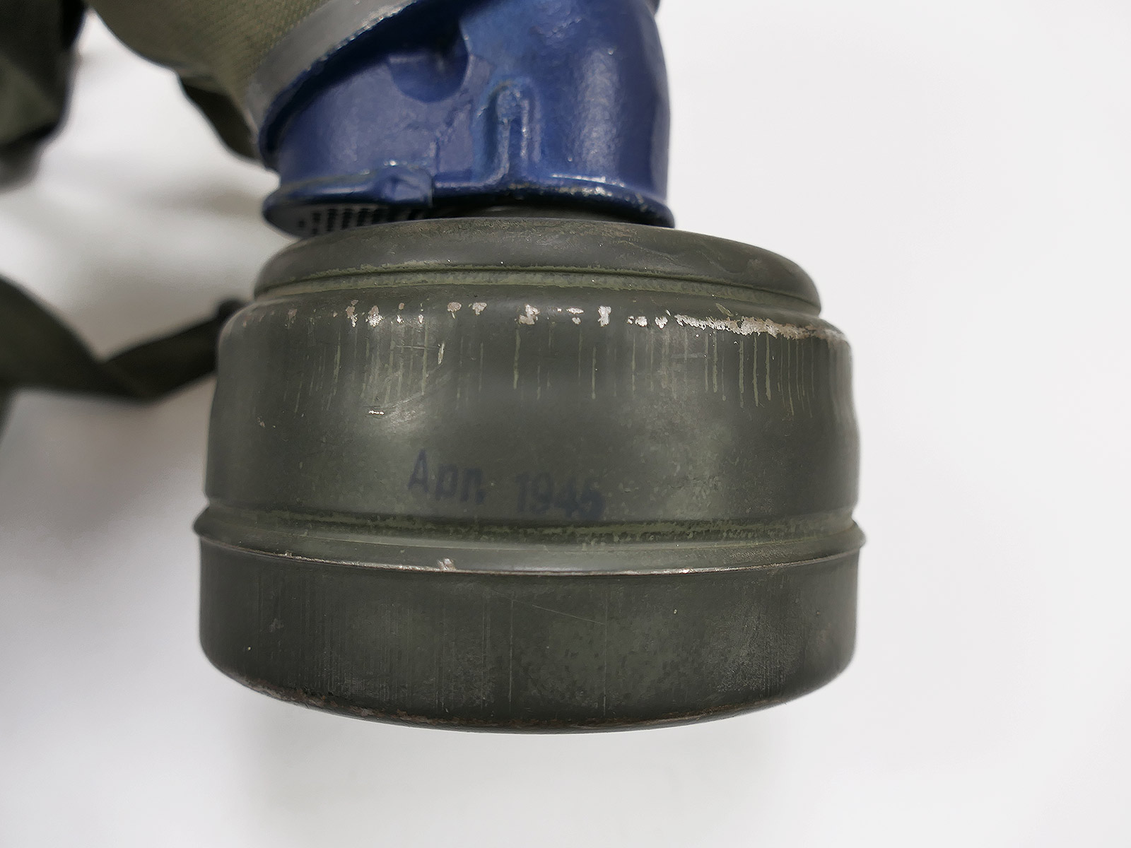 Wehrmacht Original TOP Gasmaske 1944 Filter FE42 (1945!) in Gasmaskendose mit Original Beriemung