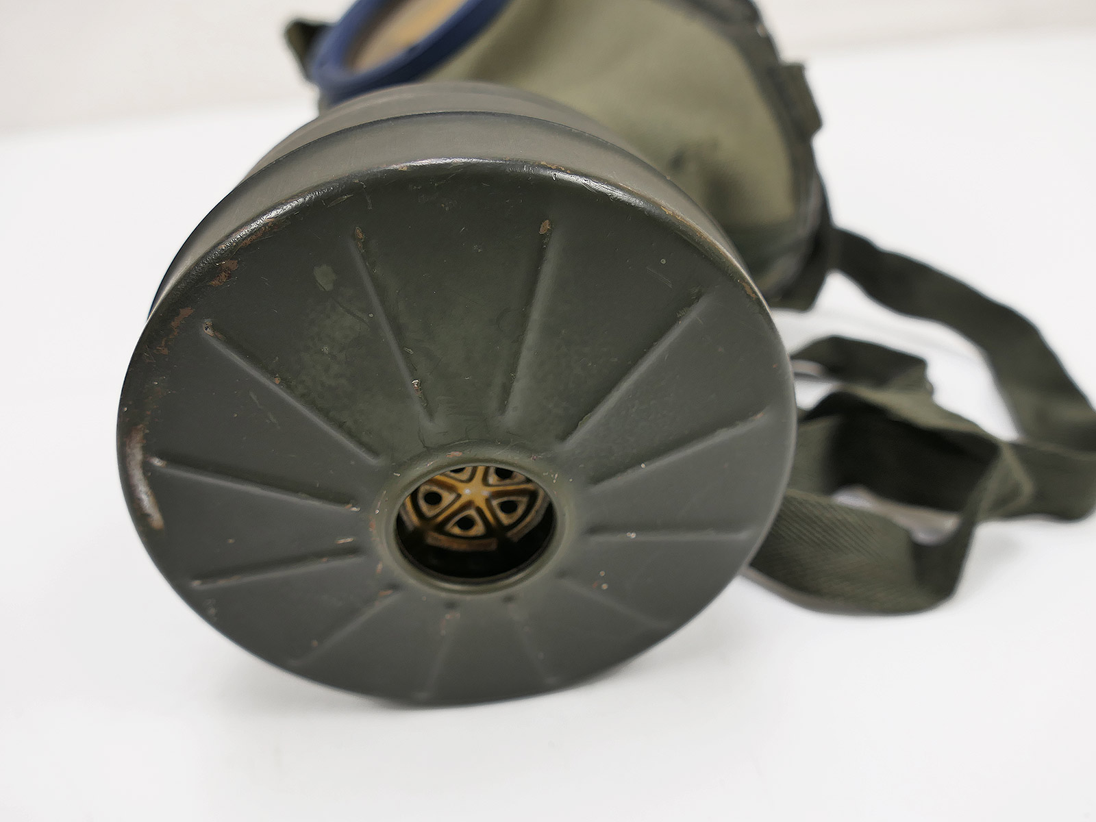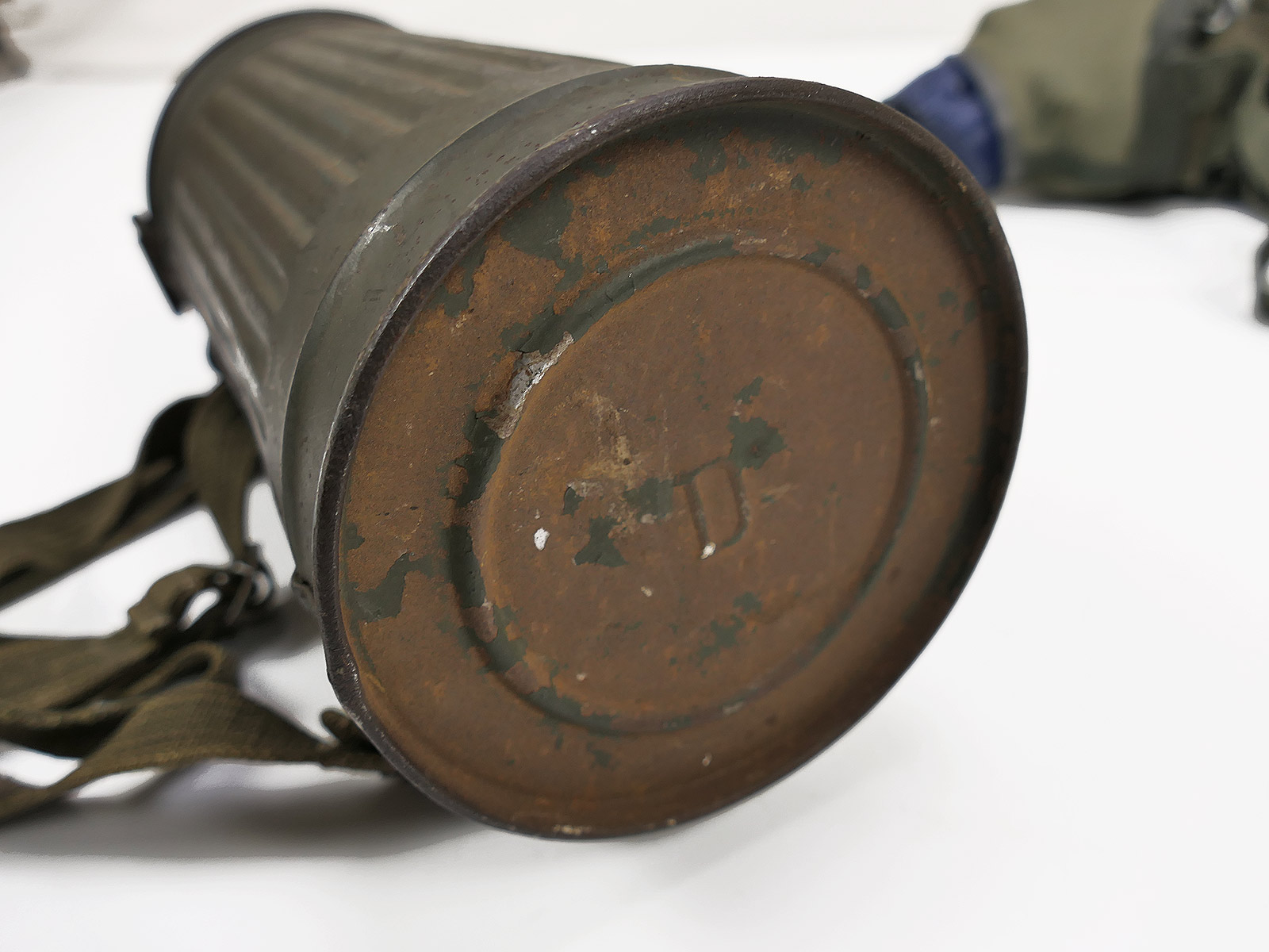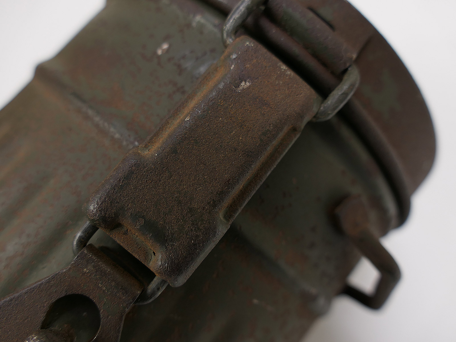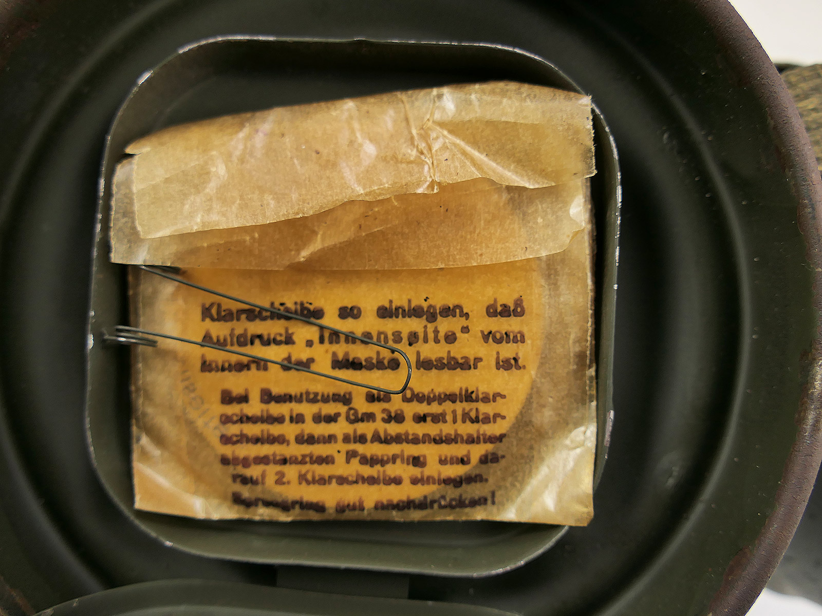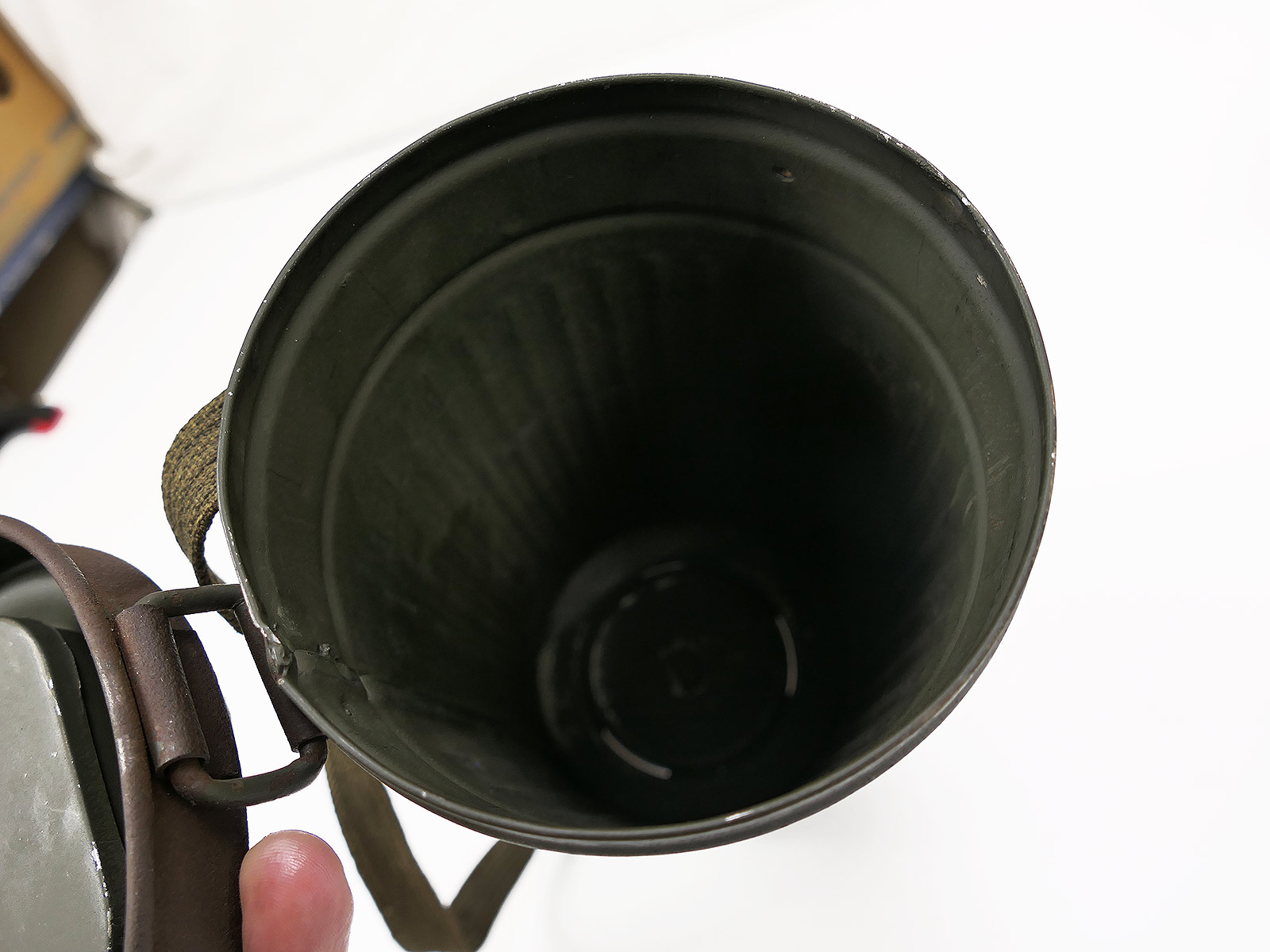 Wehrmacht Original TOP Gasmaske 1944 Filter FE42 (1945!) in Gasmaskendose mit Original Beriemung