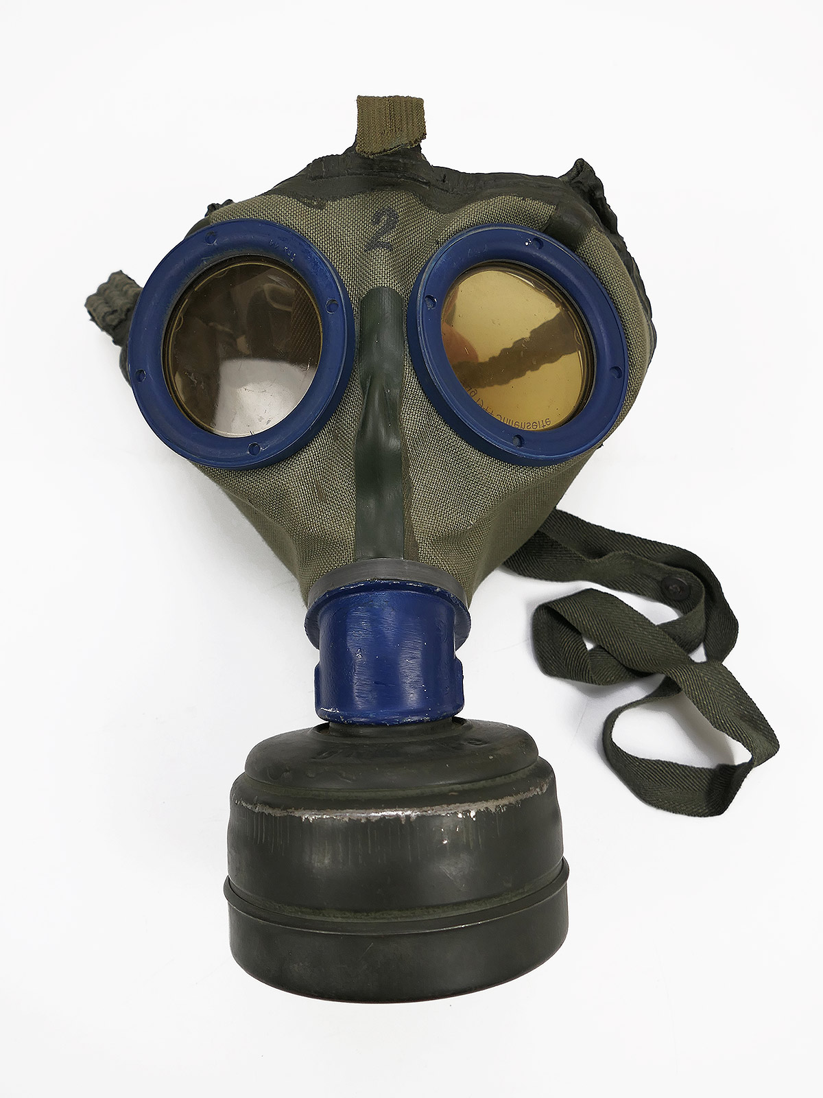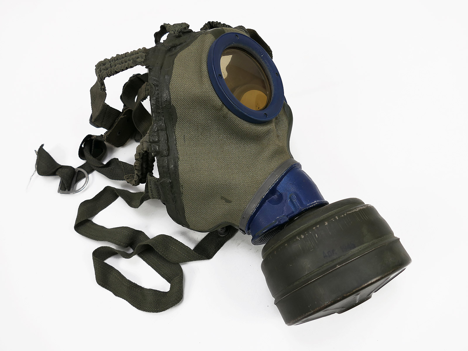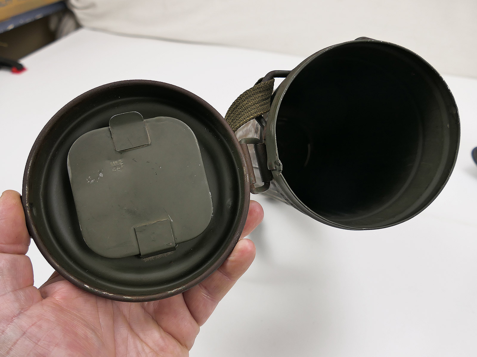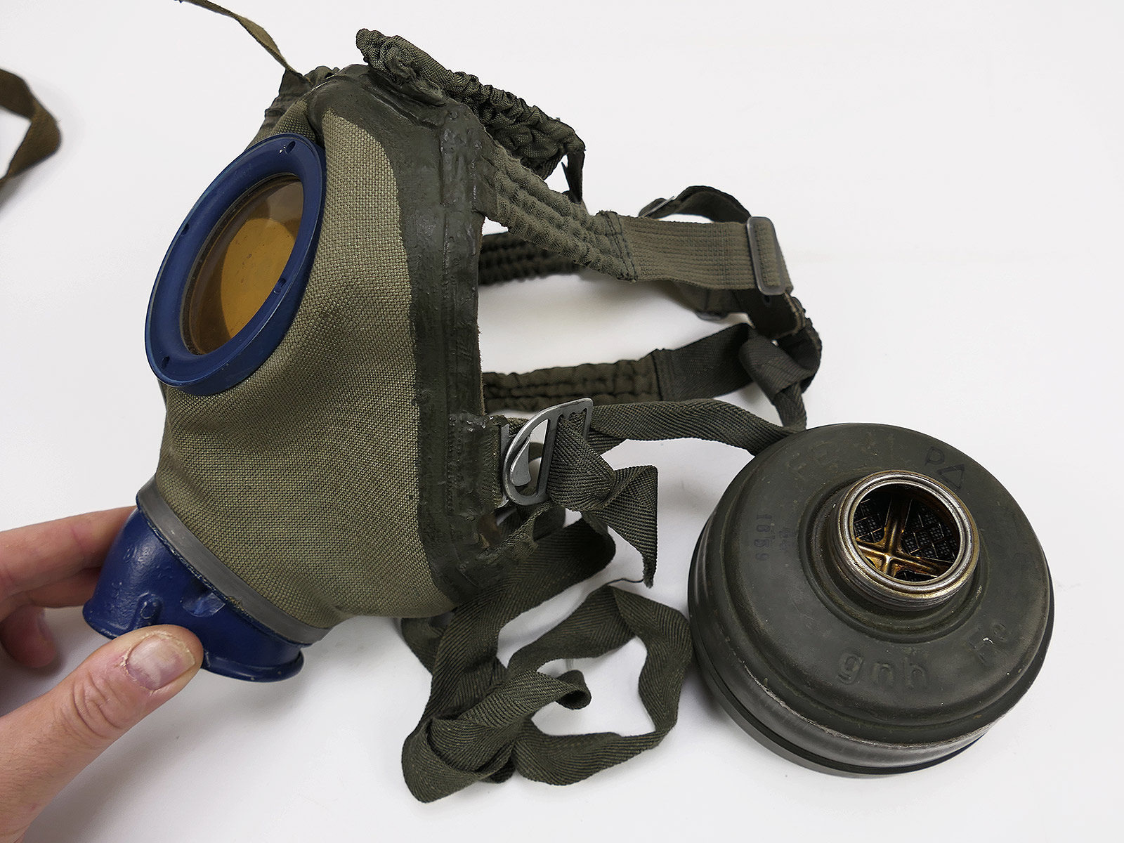 Wehrmacht Original TOP Gasmaske 1944 Filter FE42 (1945!) in Gasmaskendose mit Original Beriemung