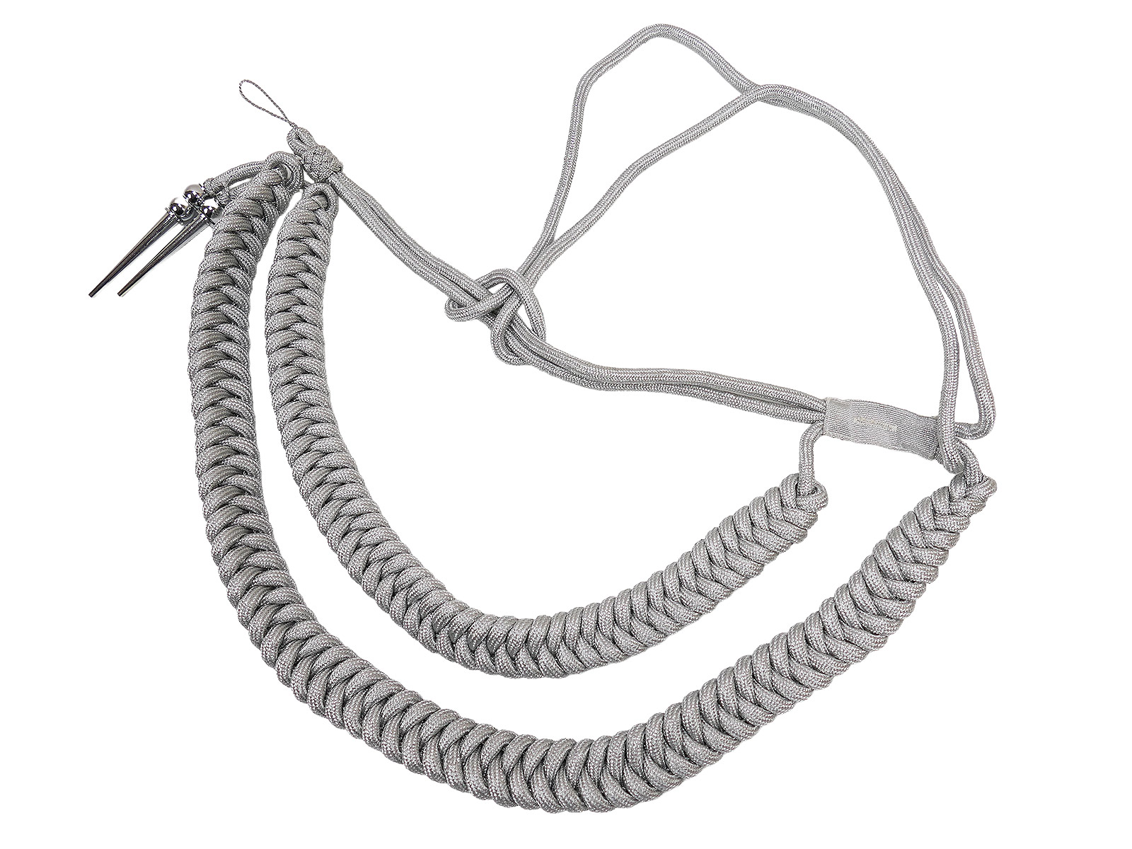 Wehrmacht Paradefangschnur Affenschaukel Adjutantenschnur - DOPPELT- Uniform silber/ Alu