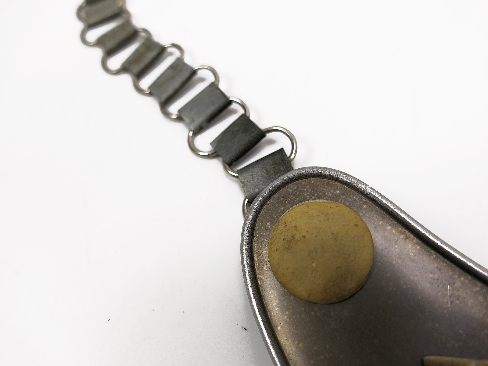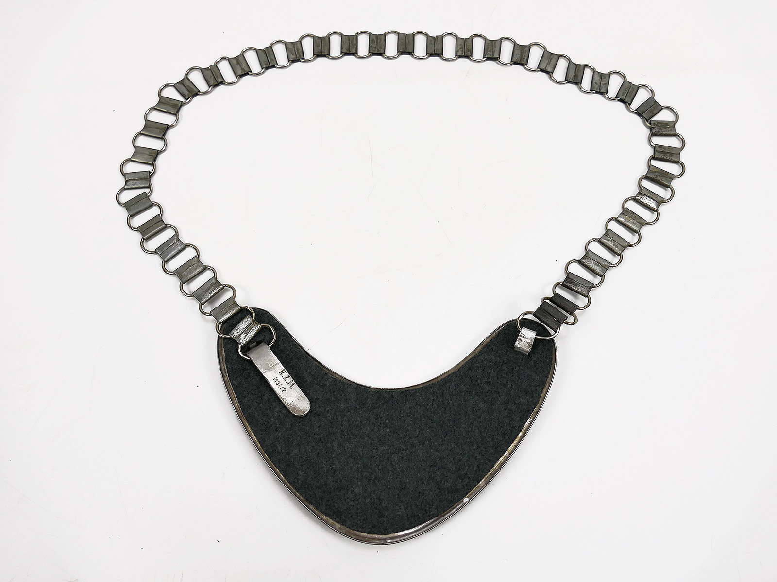 Länge der Kette ca. 67cm, das Schild rückseitig mit Wolltuch unterlegt.