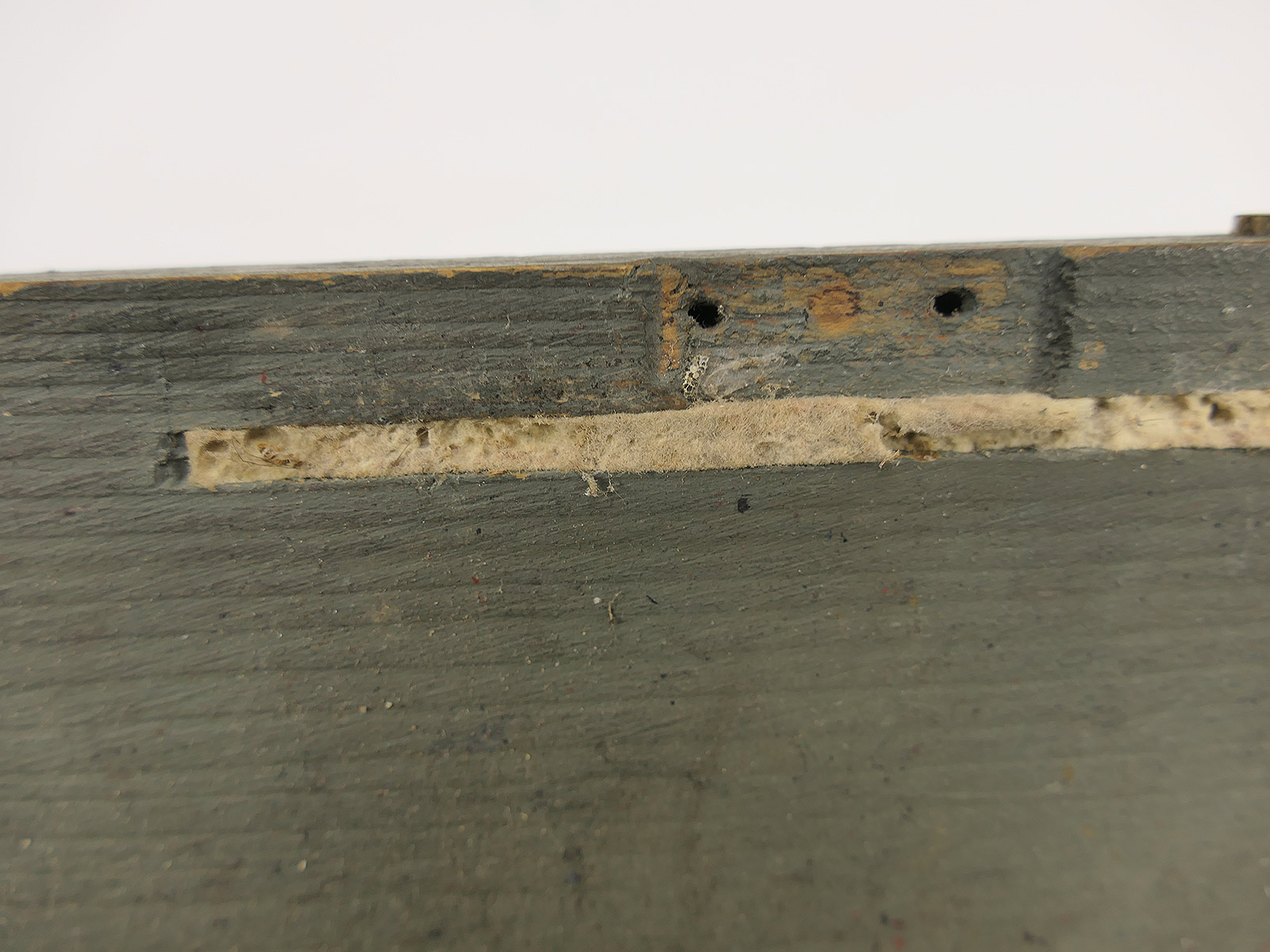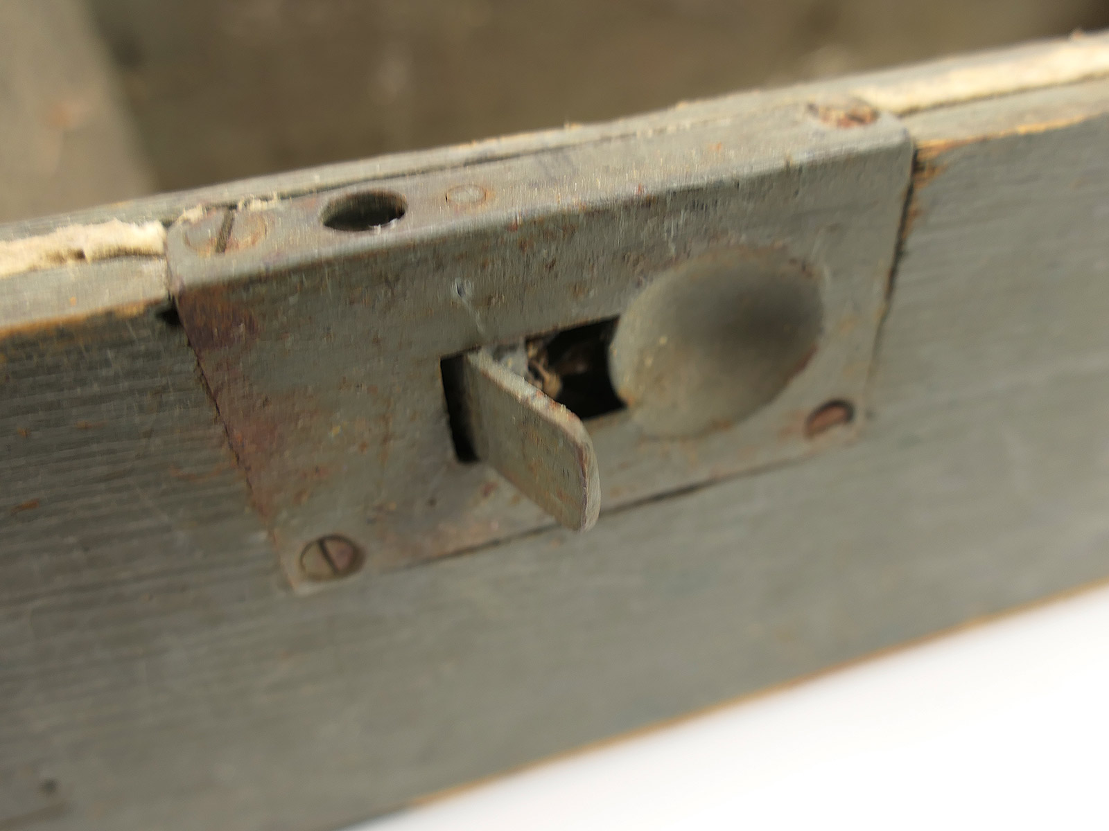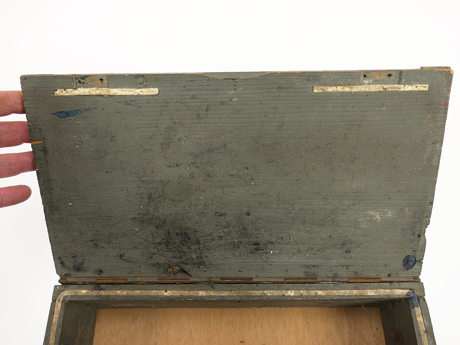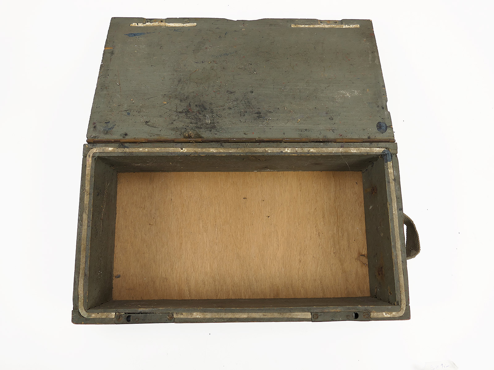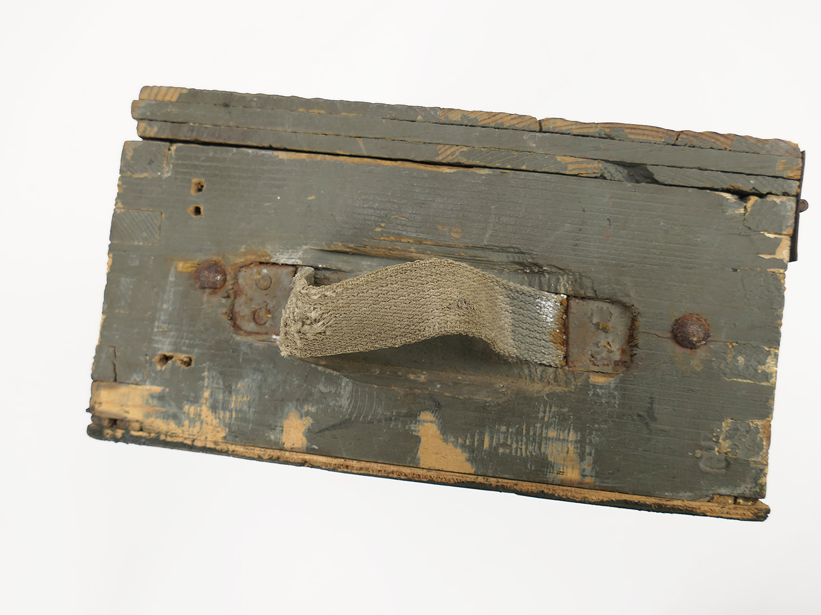 Verbandkasten der Wehrmacht, Boden repariert, Deckel nicht mehr arretierbar, da innen unvollständig.