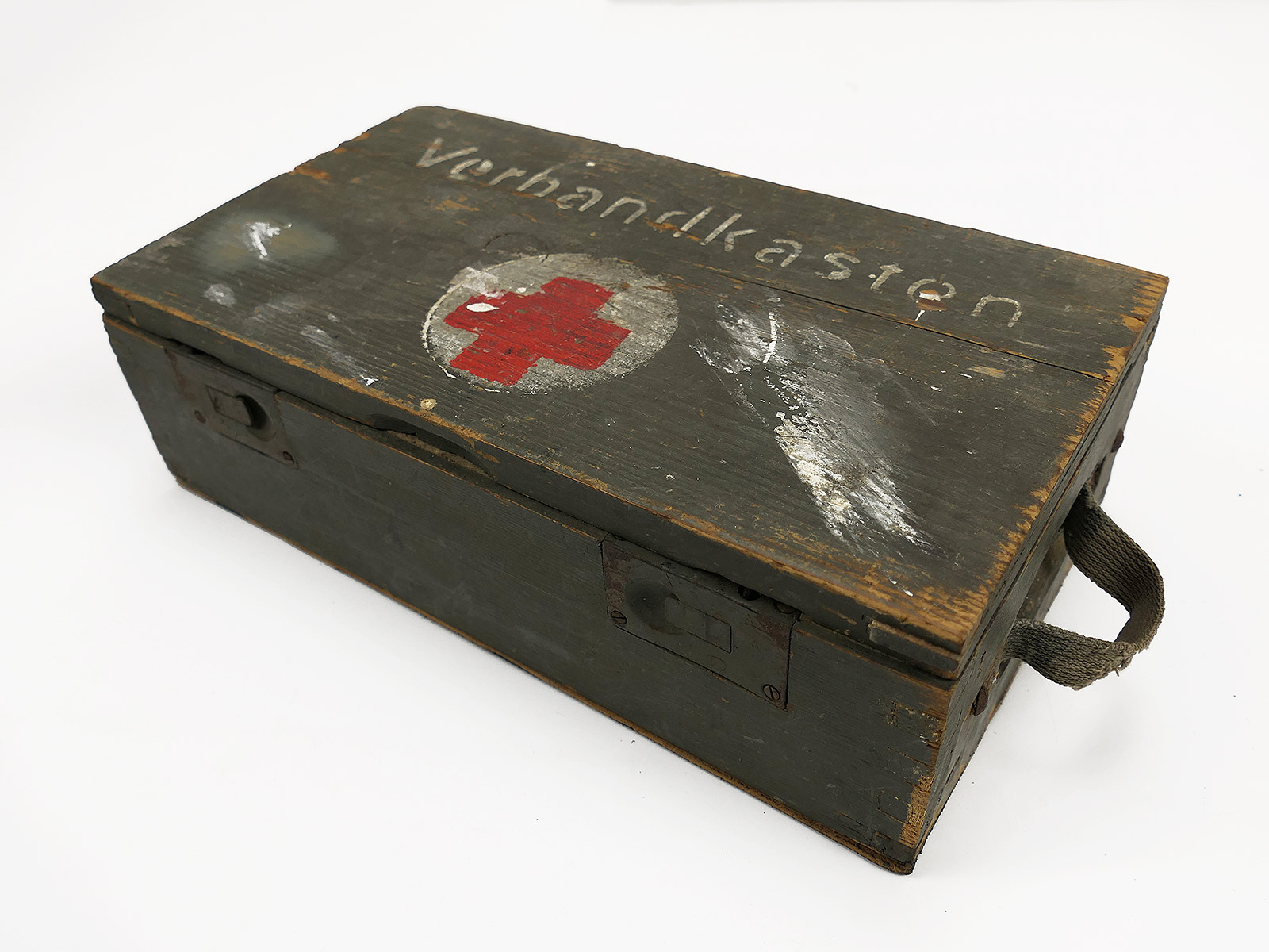 Wehrmacht Rotkreuz Verbandkasten Erste Hilfe Kasten aus Holz mit Reparatur