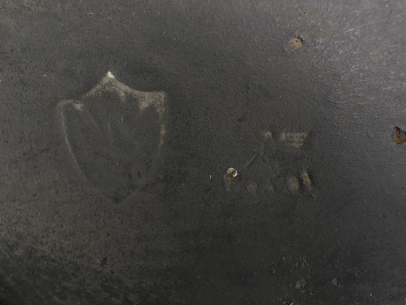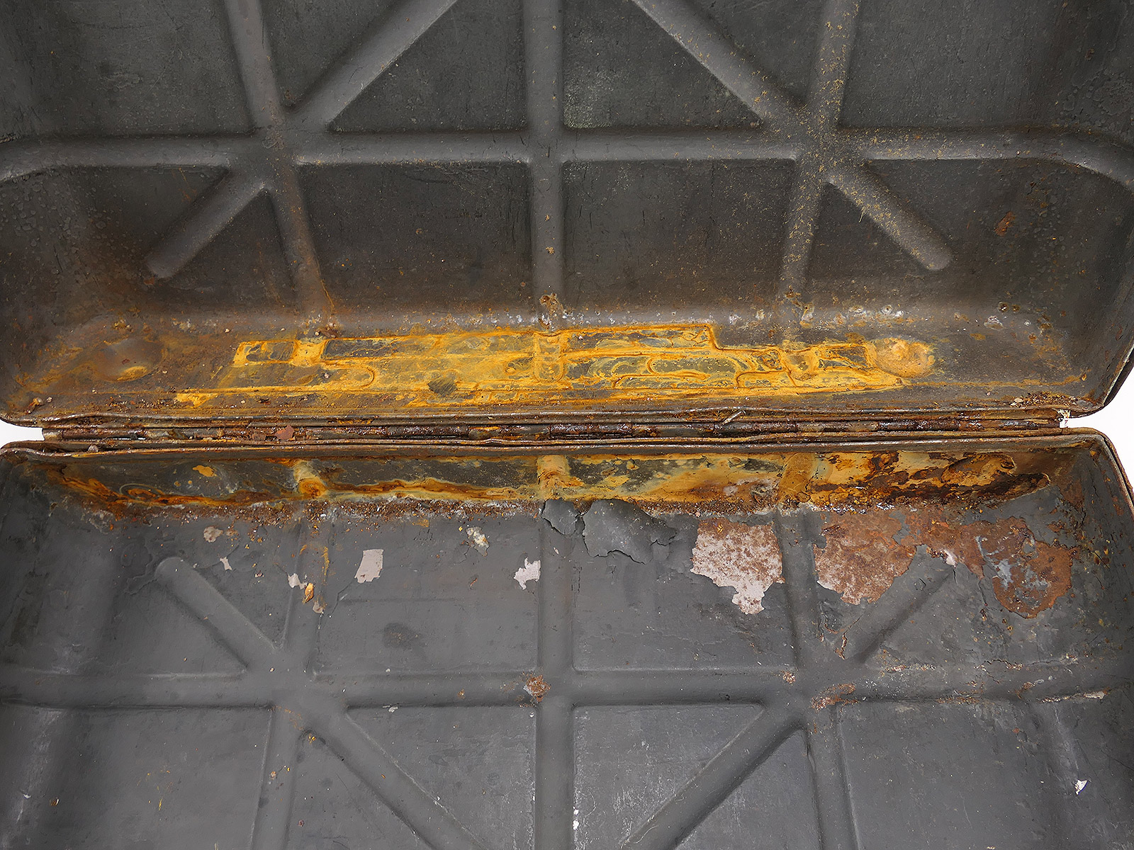 Verschluß in Ordnung, schließt sauber, Holzgriff vollständig, alle Tragehaken vorhanden.