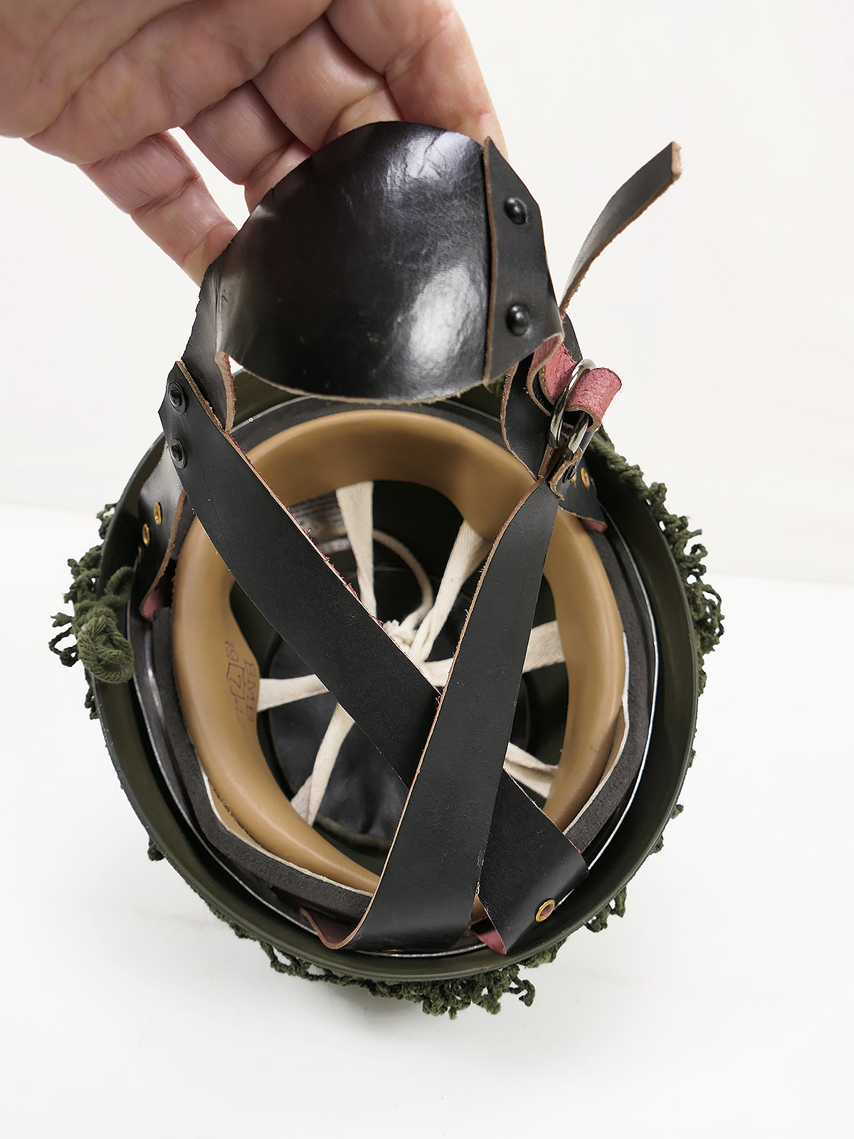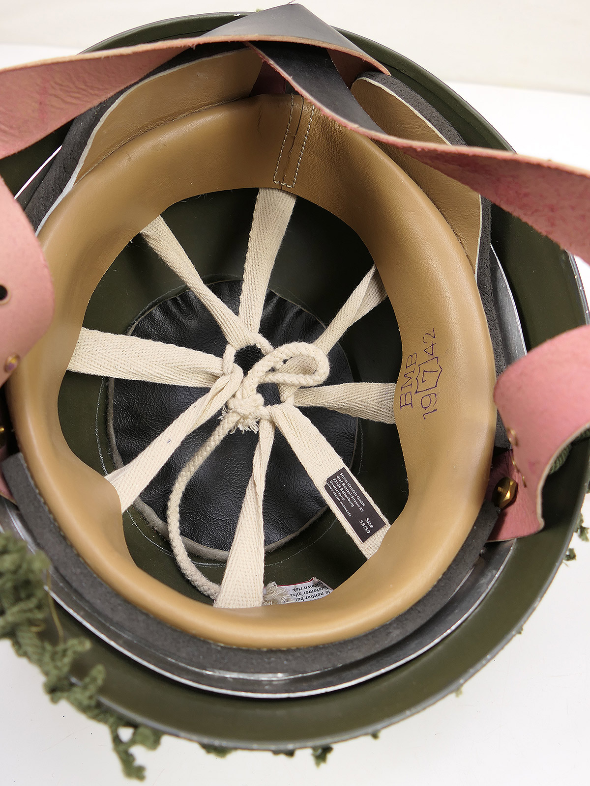 WW2 Britischer Fallschirmjägerhelm Stahlhelm Fallschirmjäger Paratrooper Gr. 58/59 Helmnetz + Camo Material