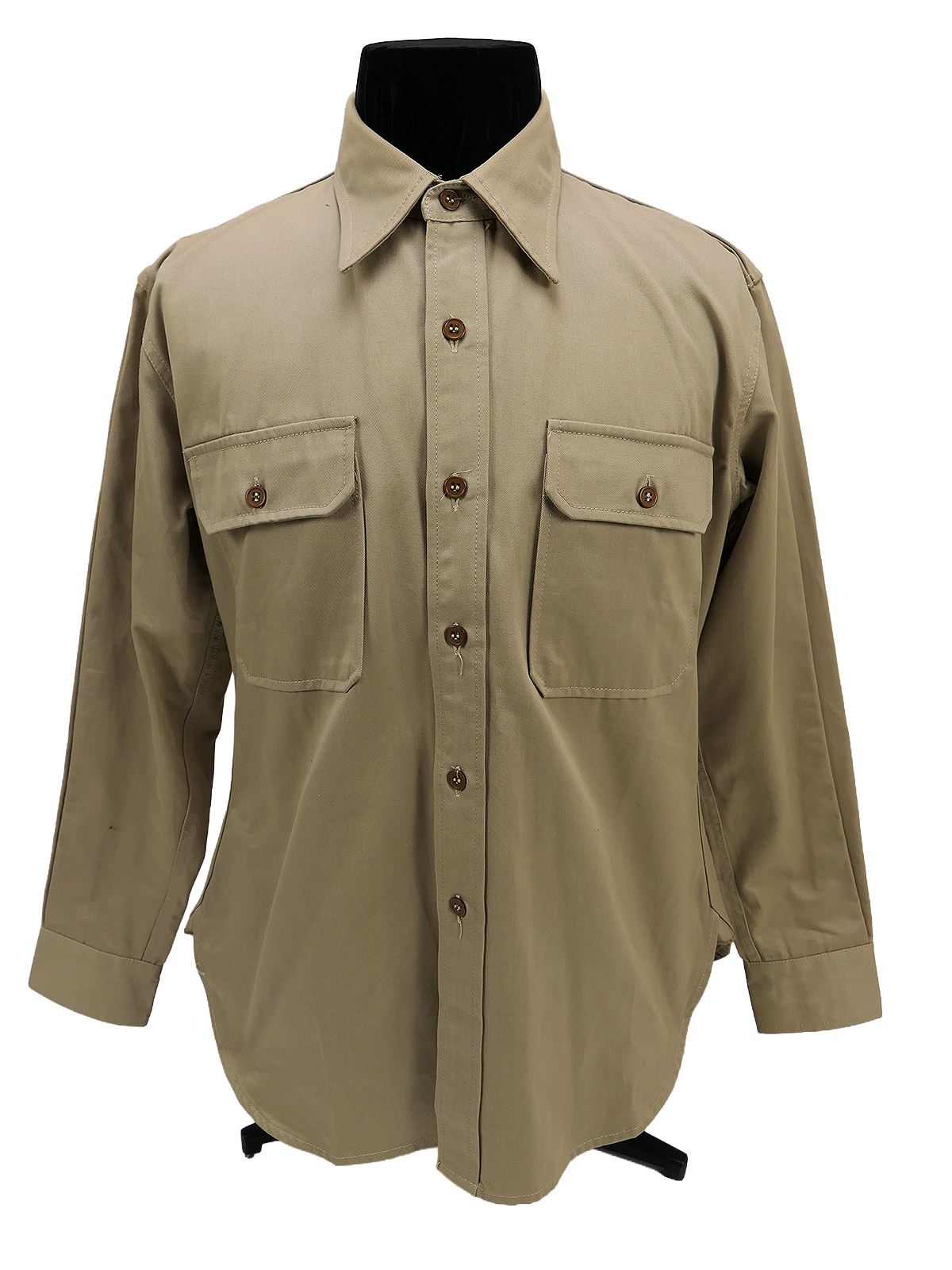WW2 US ARMY Chino Uniform Hemd Sommer Officers Rangoon Gr. Large COLLECTION BATTLE WORN