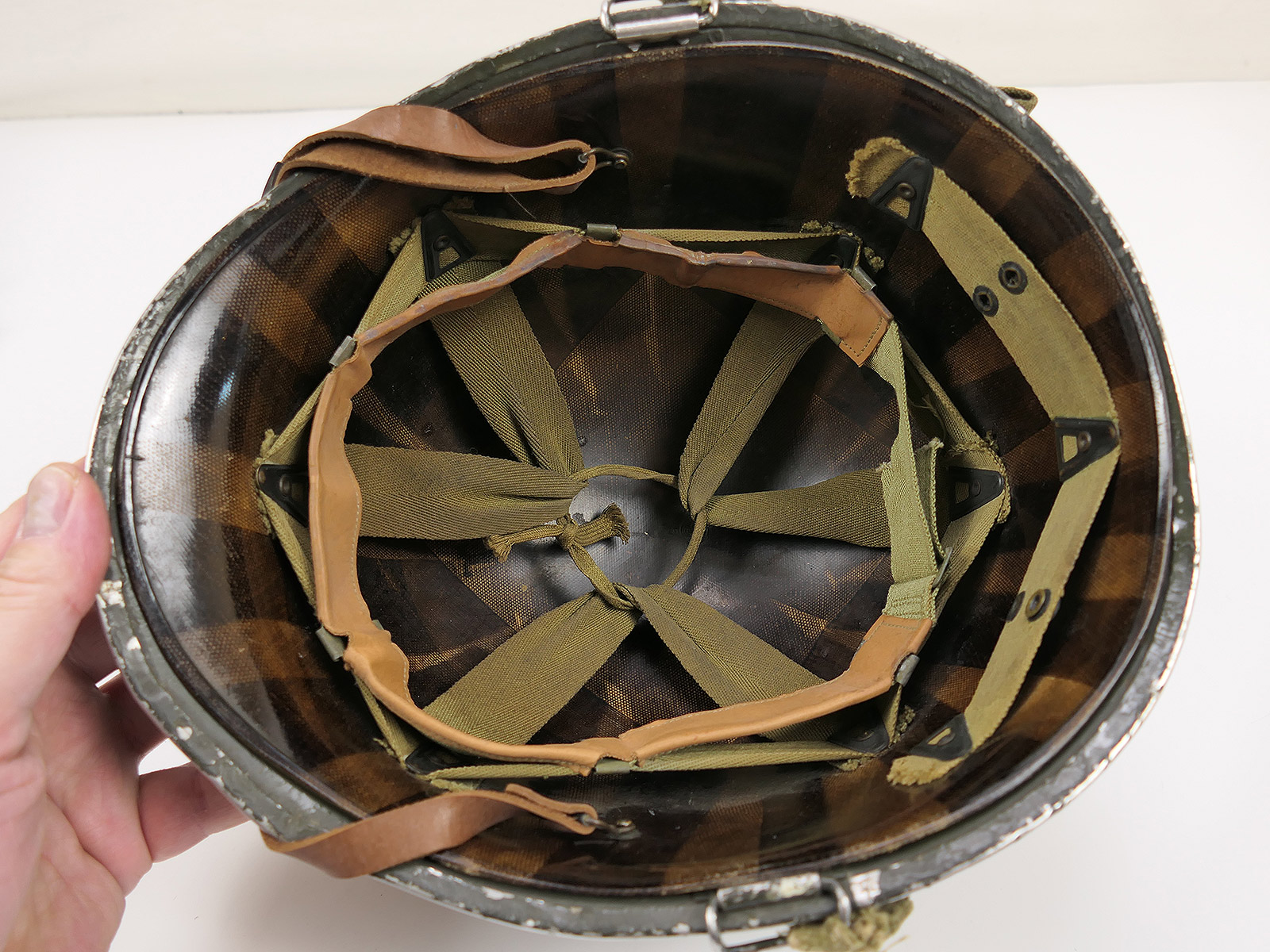 WW2 US ARMY M1 Swivel Bale Front Seam Helmet Stahlhelm mit MSA Liner / Kinnriemen
